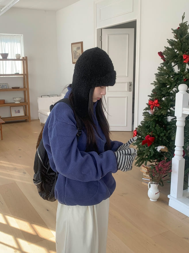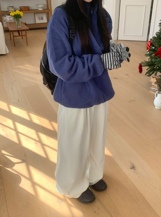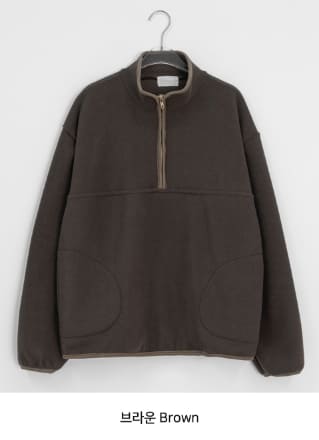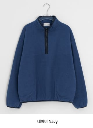 メンヒルハーフジップアップカラーマッチング起毛フリーススウェットシャツ