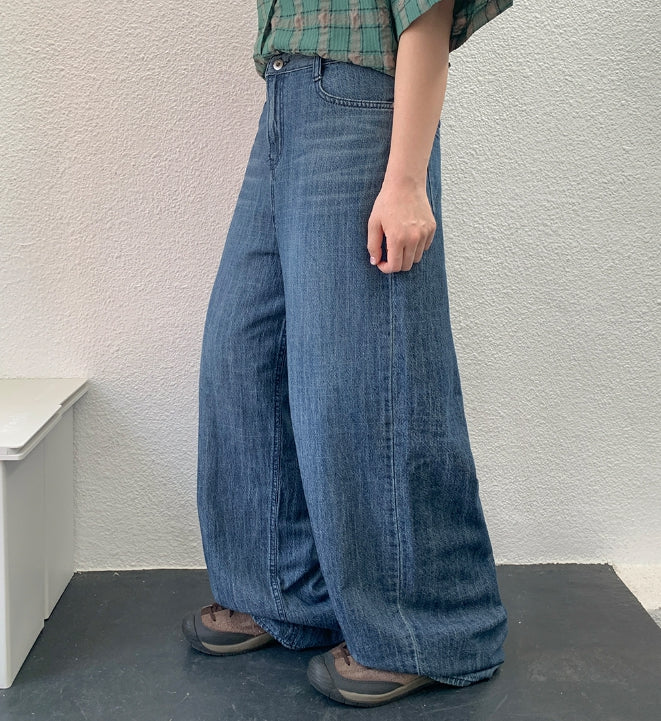 マイティサマーキャットウォッシュ加工ワイドデニムパンツ