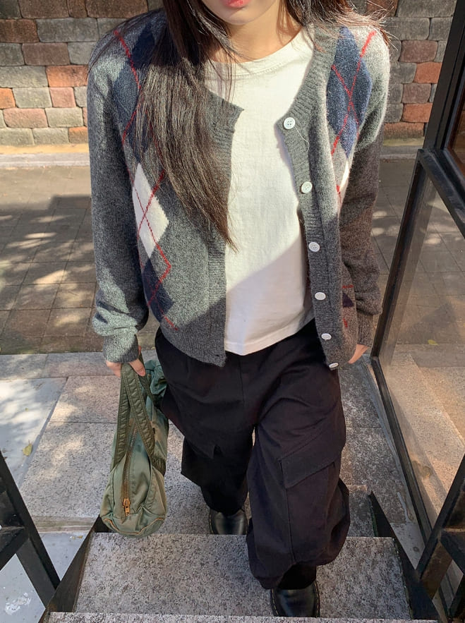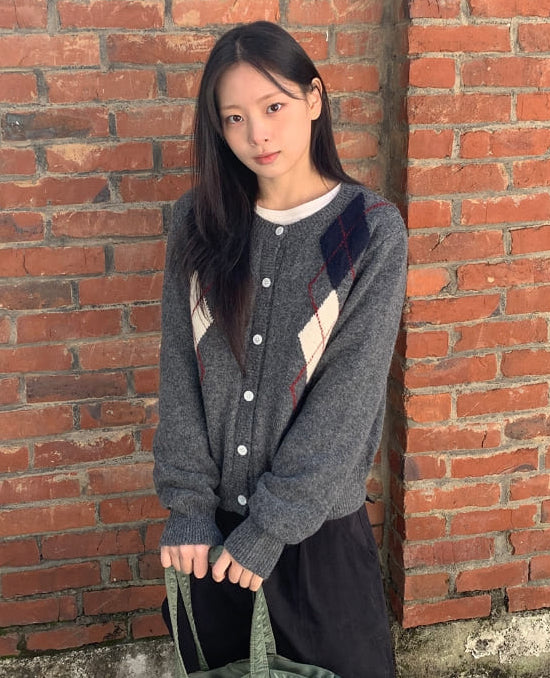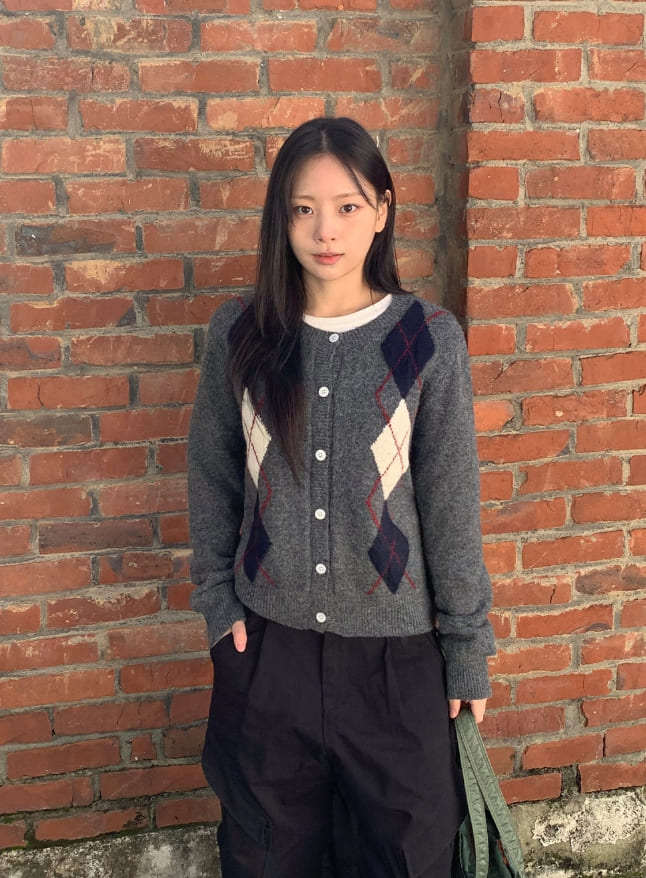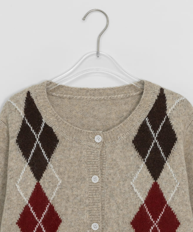 ミゴンアーガイルラウンドニットカーディガン