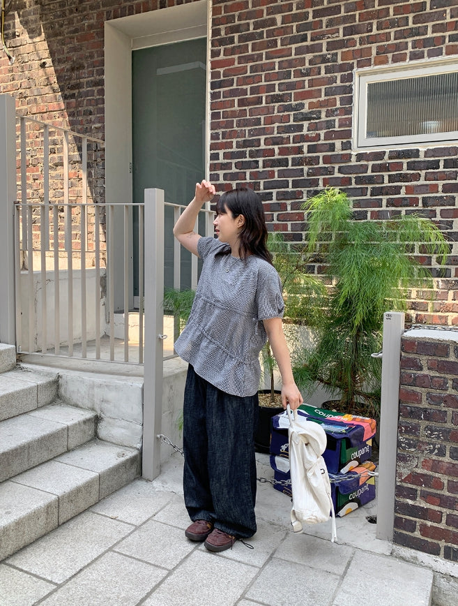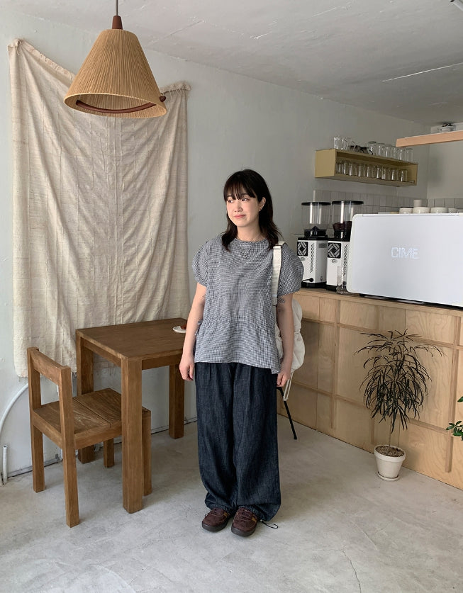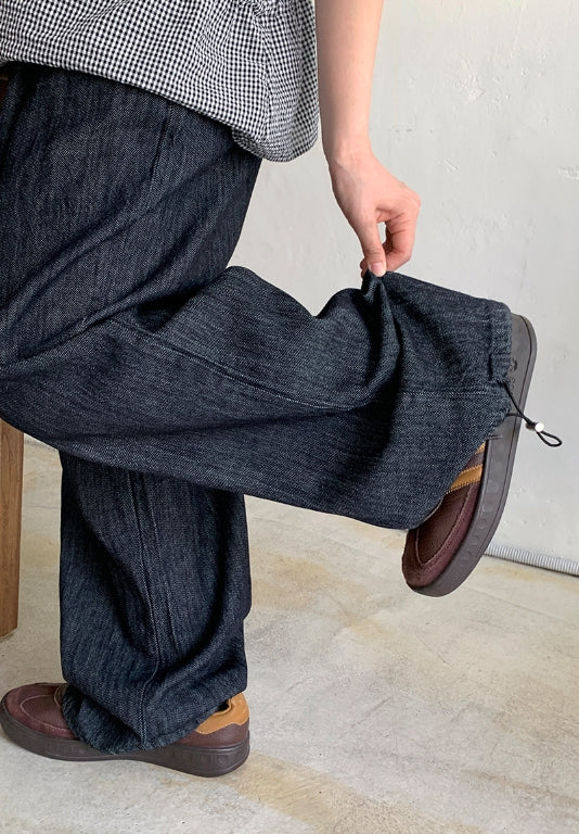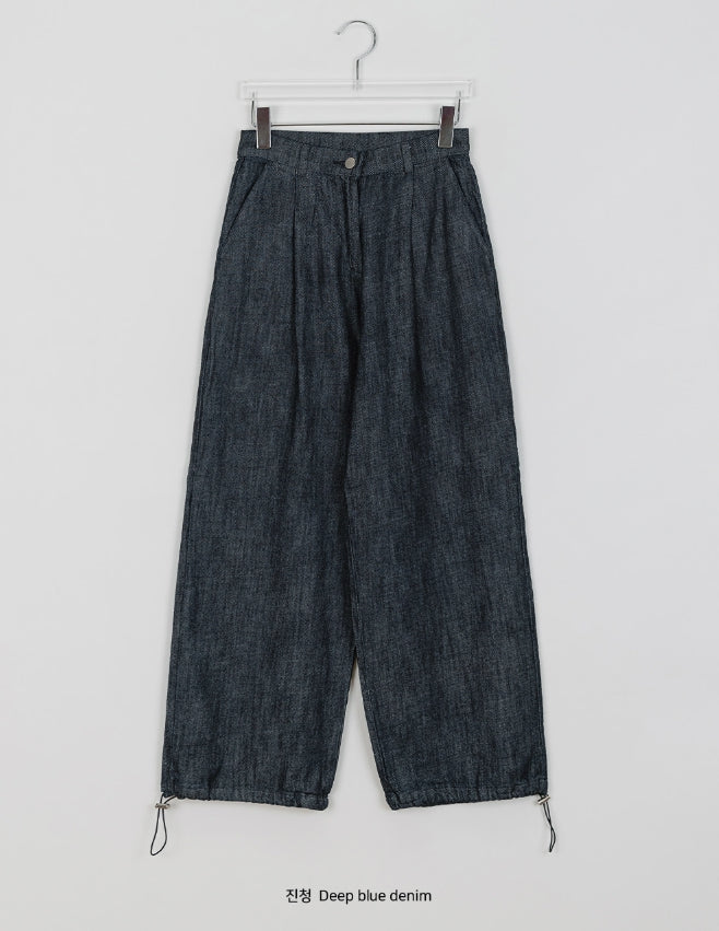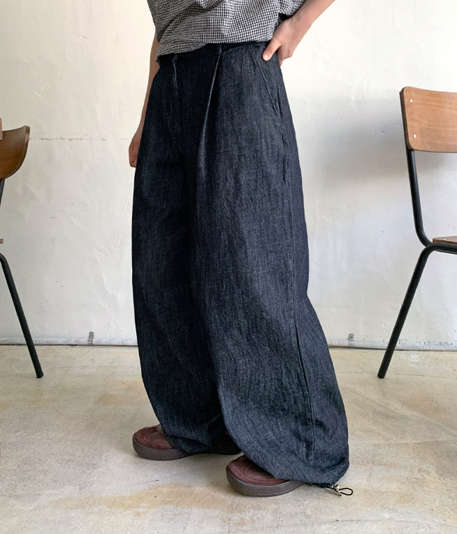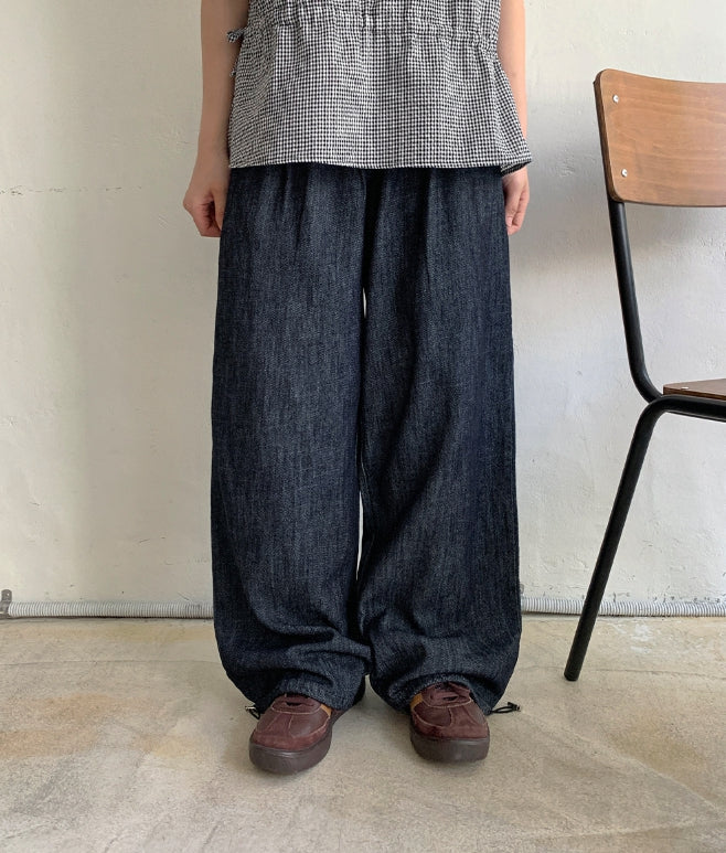 ミムクピンタックストリングサマーローワイドデニムパンツ