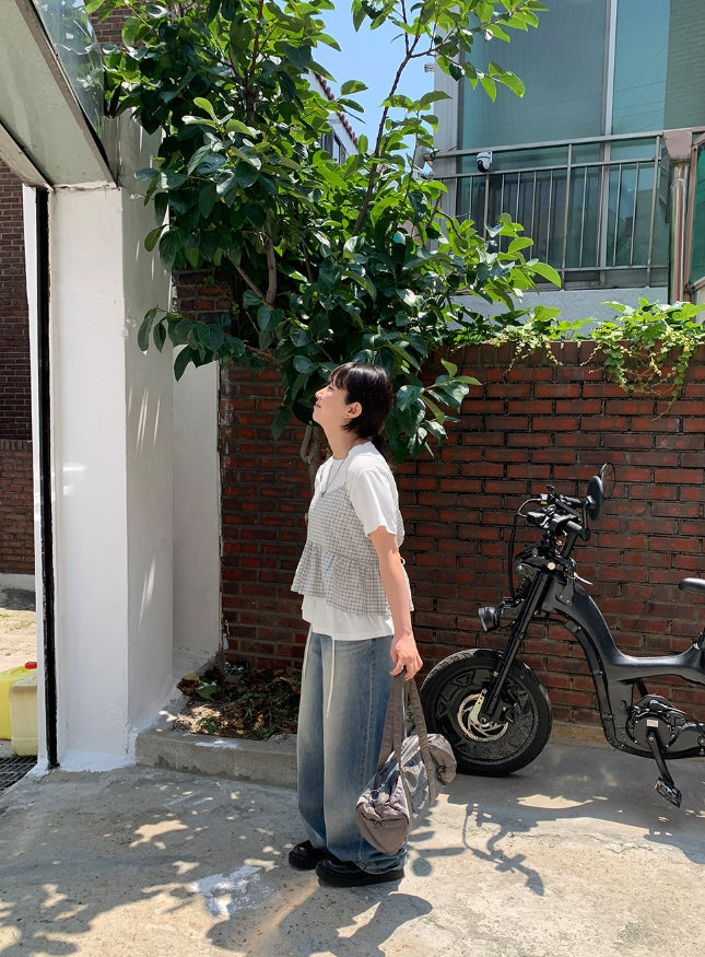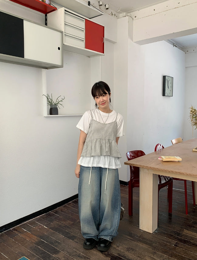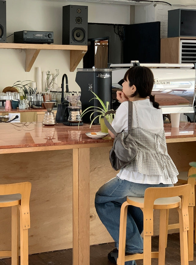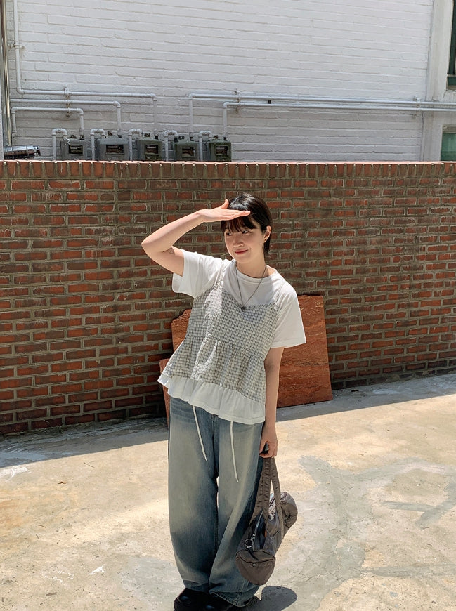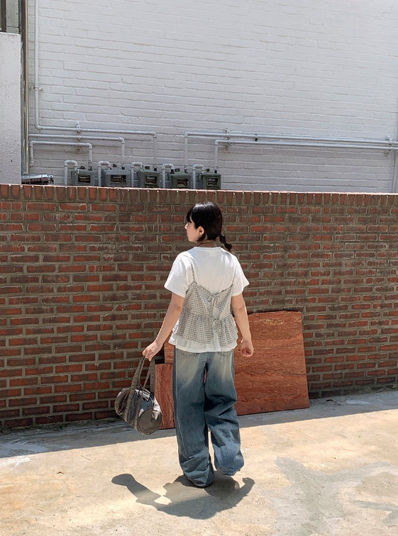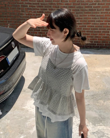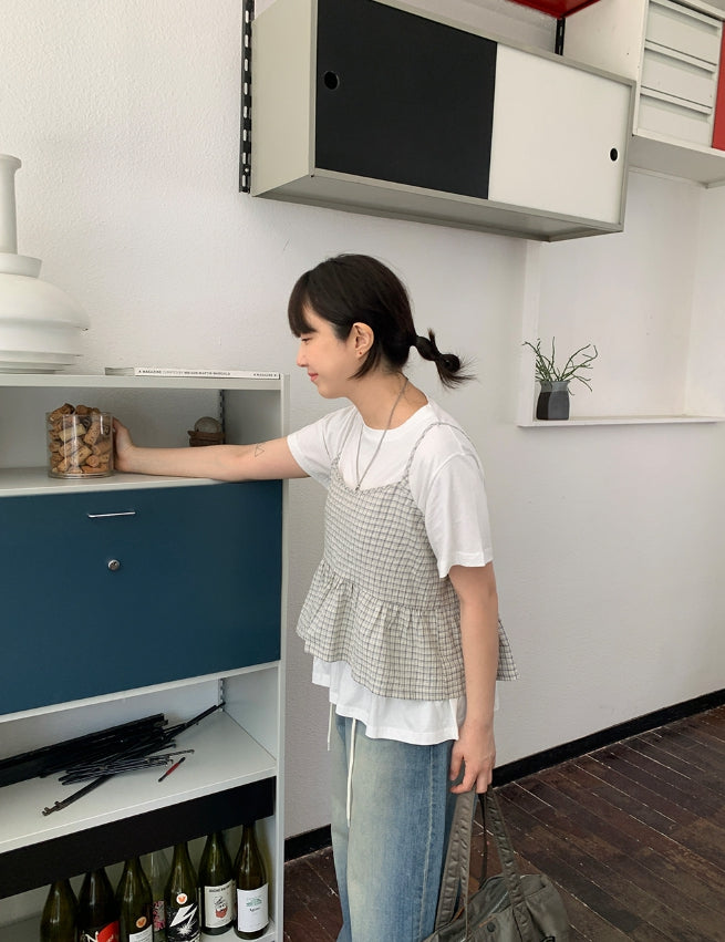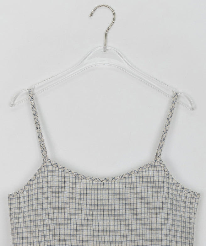 Mirui Ribbon Check Shirring Layered Sleeveless Bustier