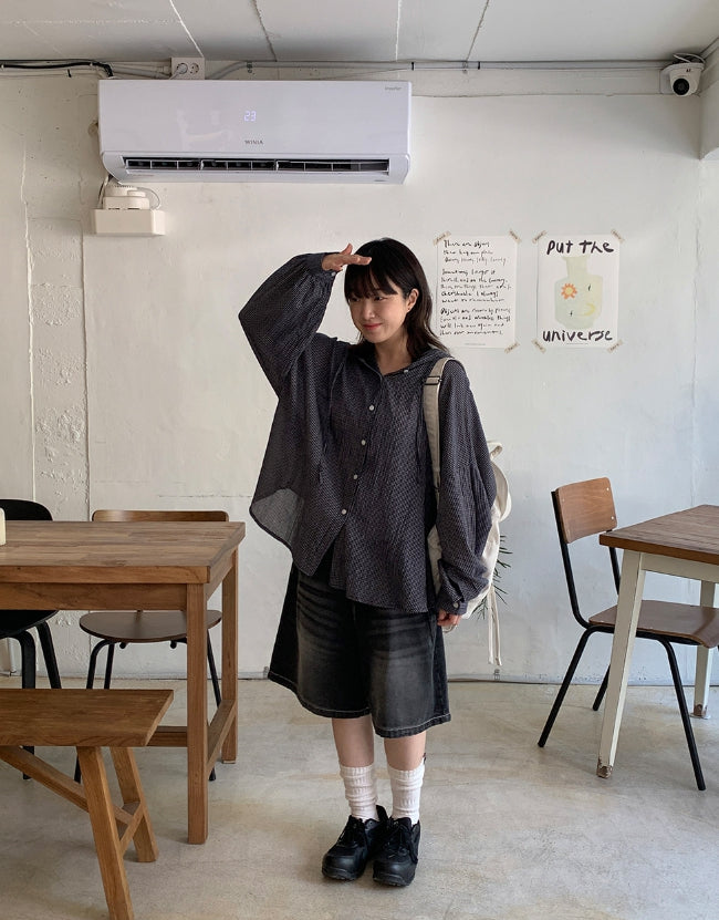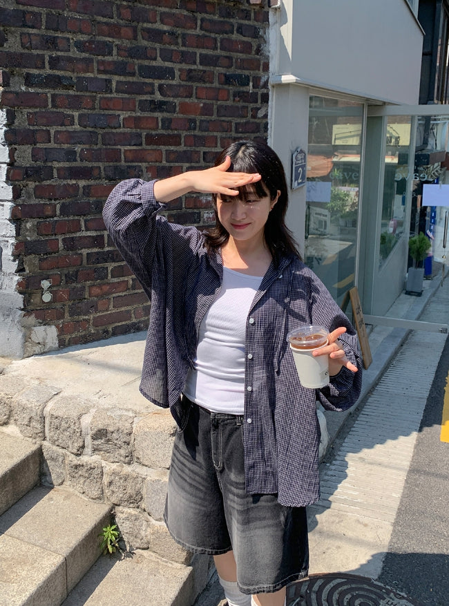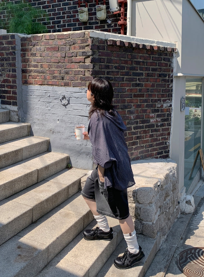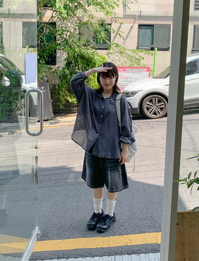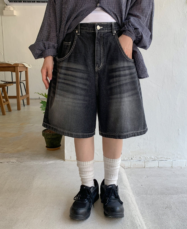 Mitiki Pintuck Bijo Black Blue Bermuda Denim Pants