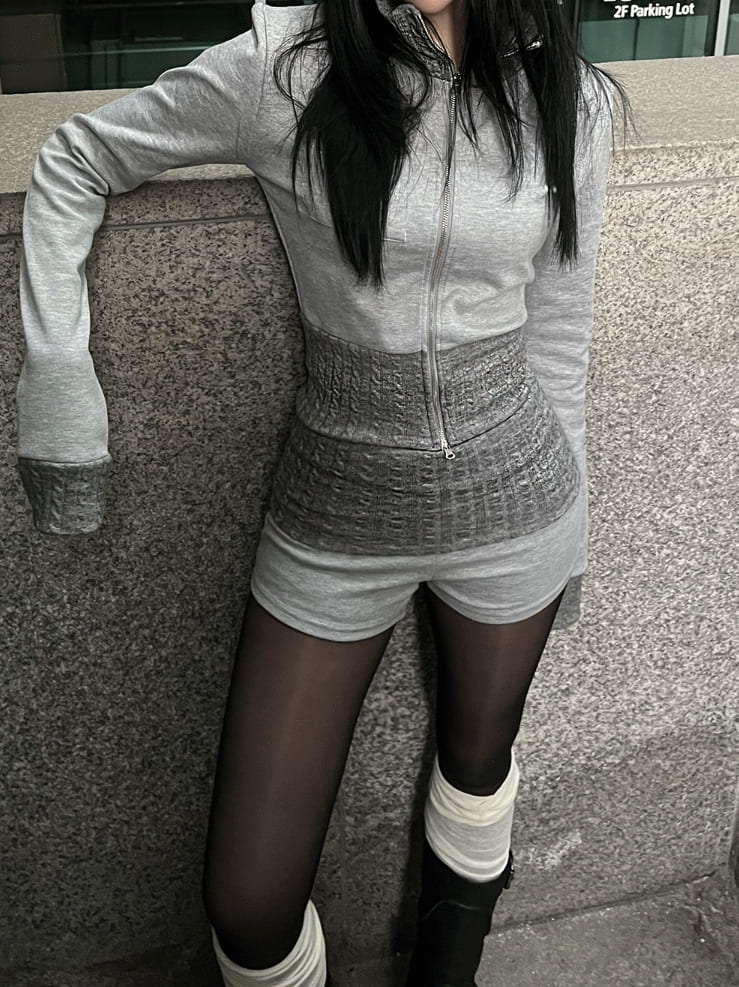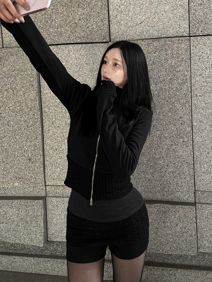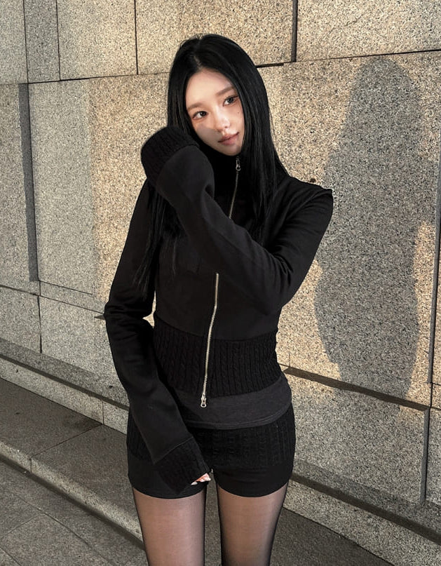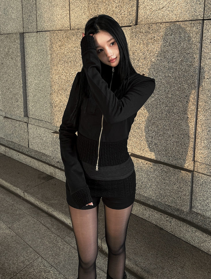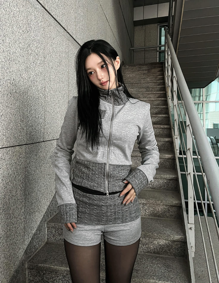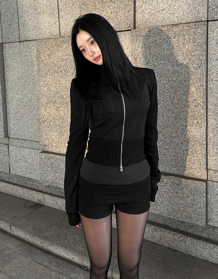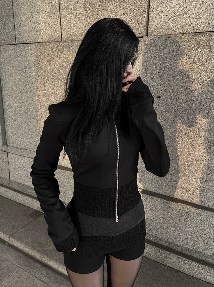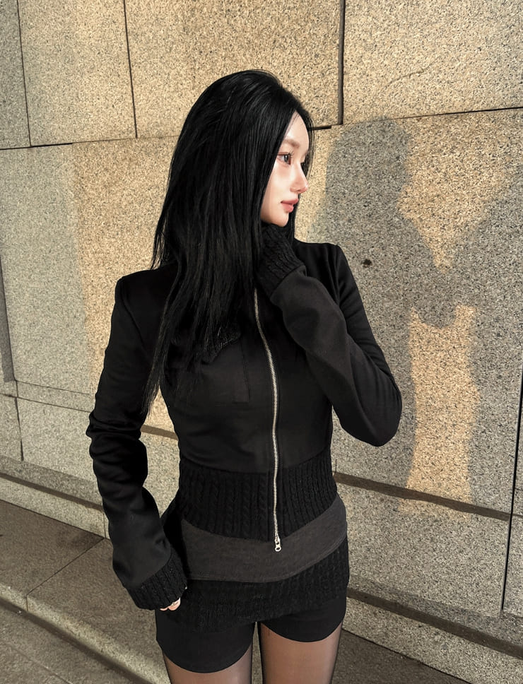 -Mix Texture Two-Way Pocket Setup Top (着丈52 肩幅40 胸囲82 袖丈67)