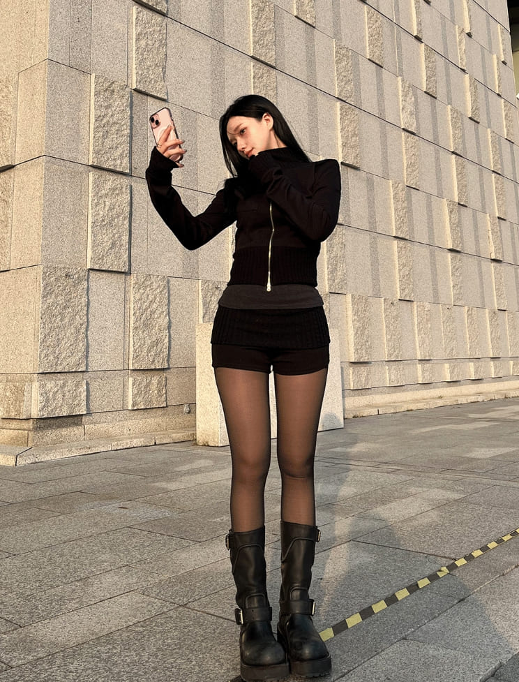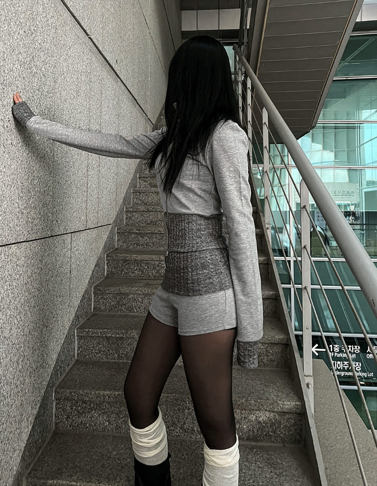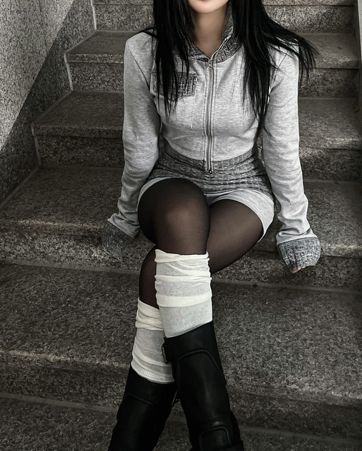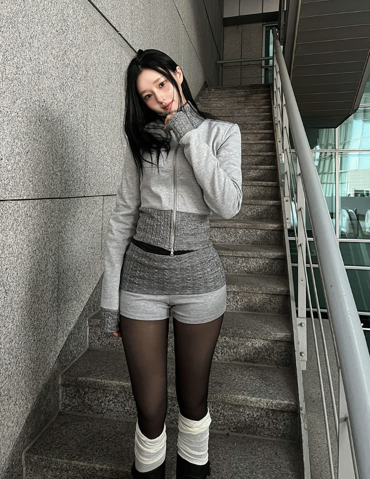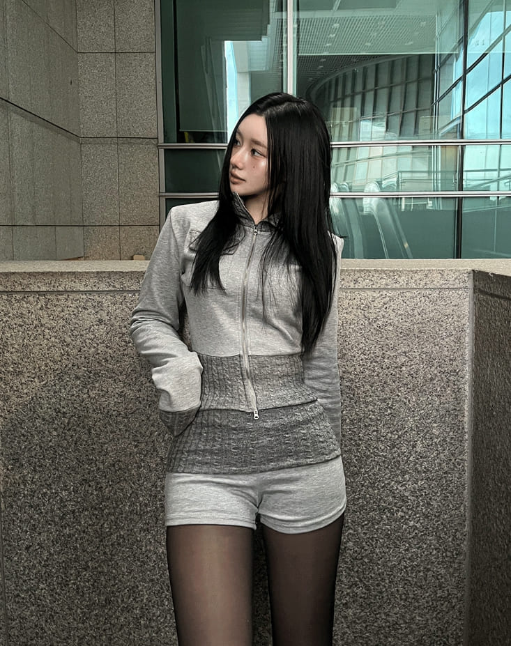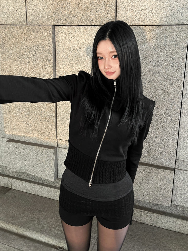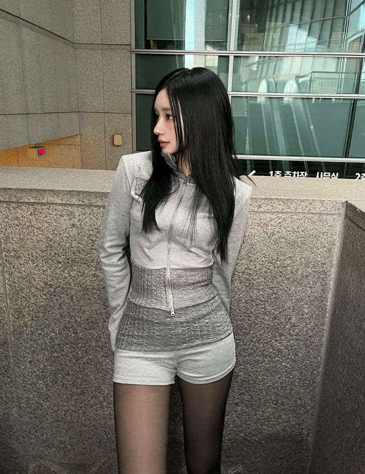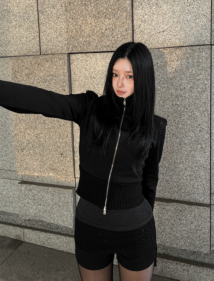 -Mix Texture Two-Way Pocket Setup Top (着丈52 肩幅40 胸囲82 袖丈67)
