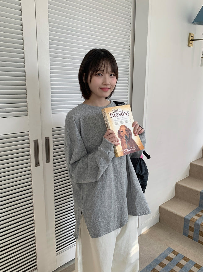 Moibe Plain Slit Shibori Long Sleeve Tee