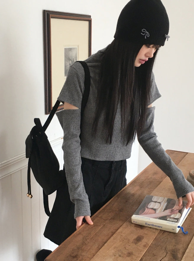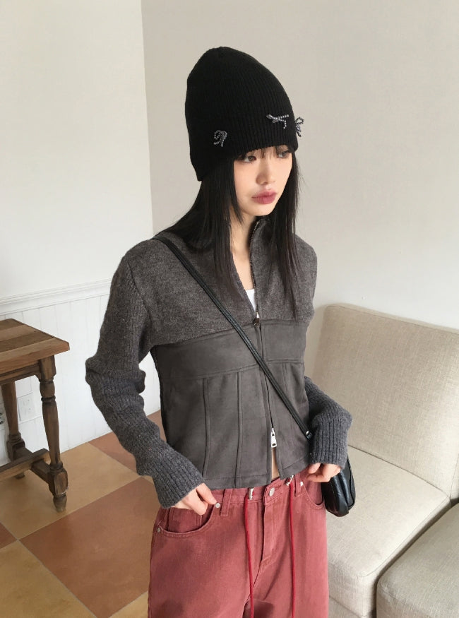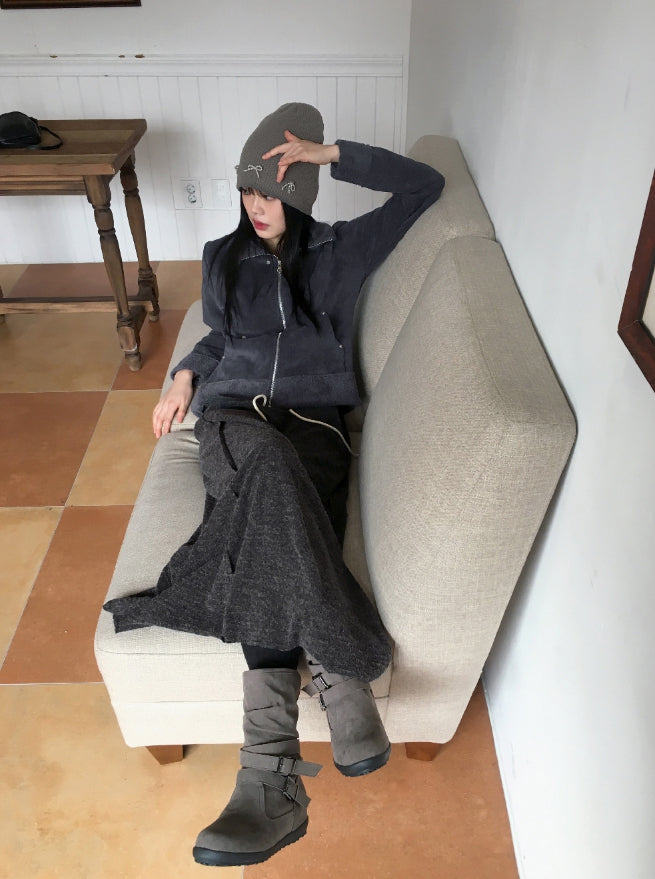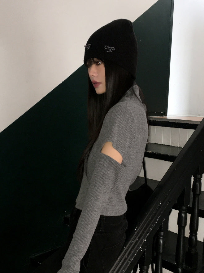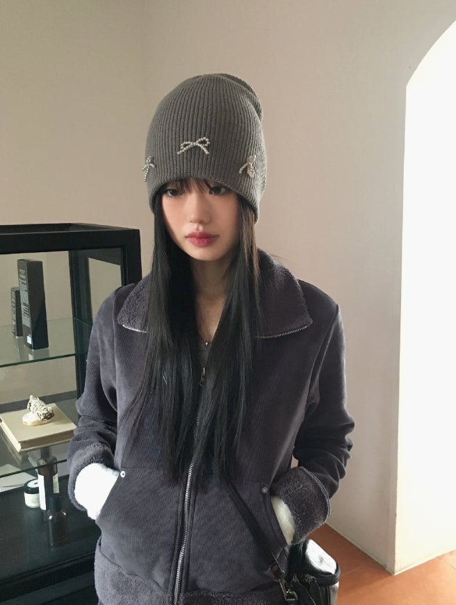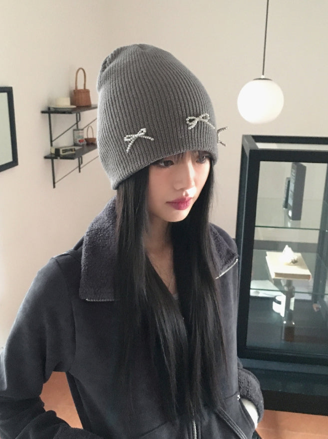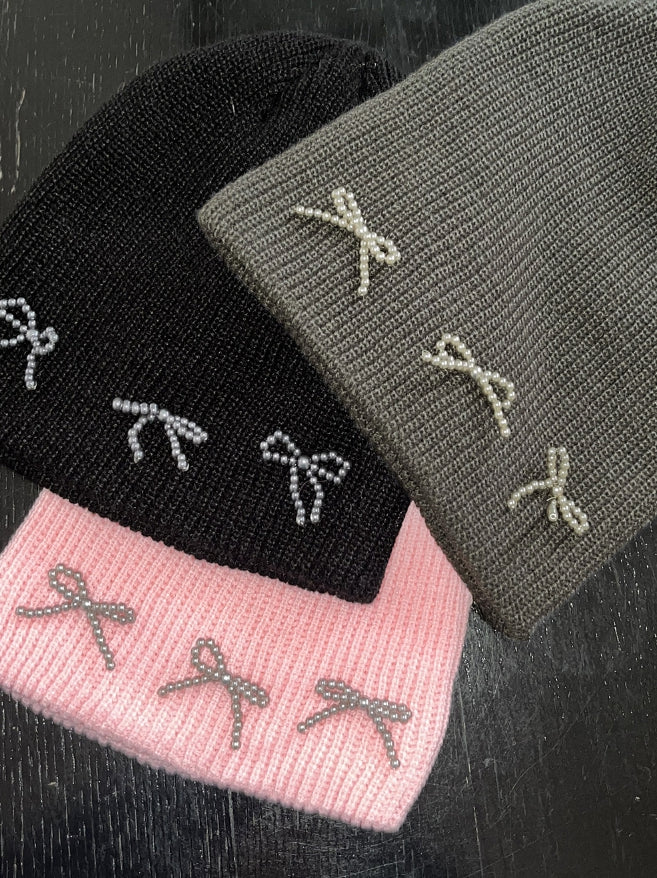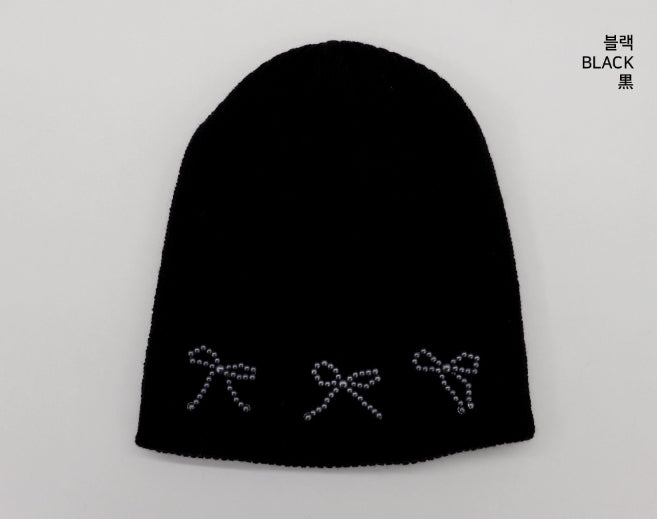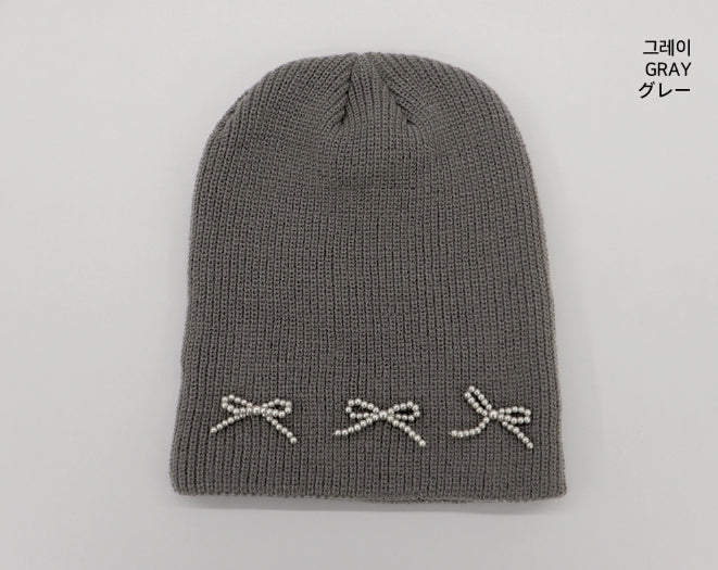 Monet Beads Ribbon Ballet Core Ribbed Beanie Hat