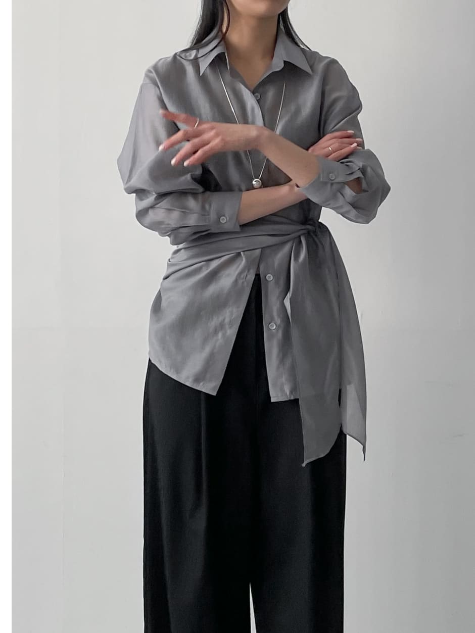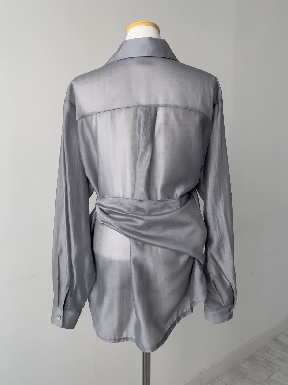 More Tencel See-Through Wrap Blouse