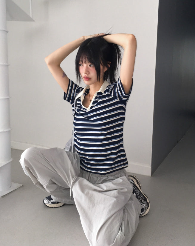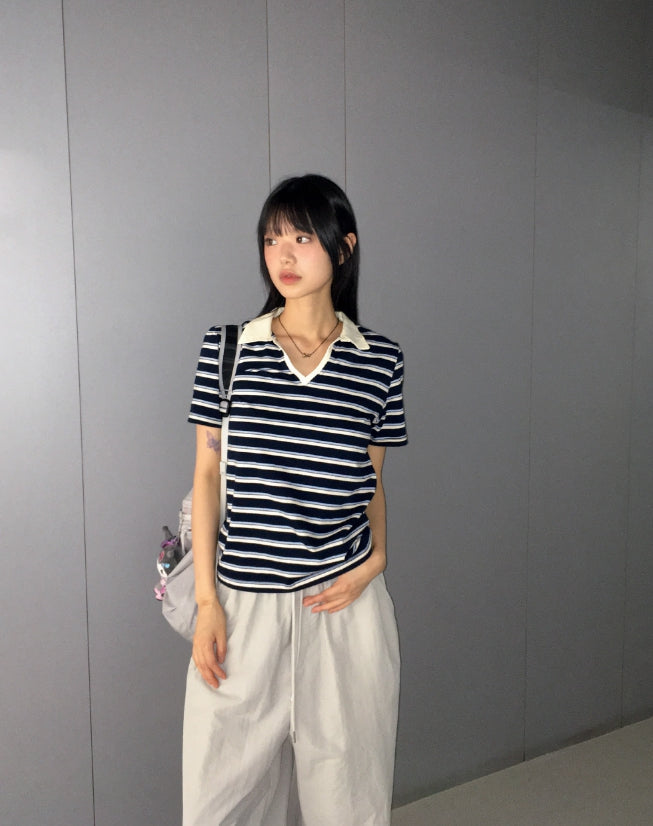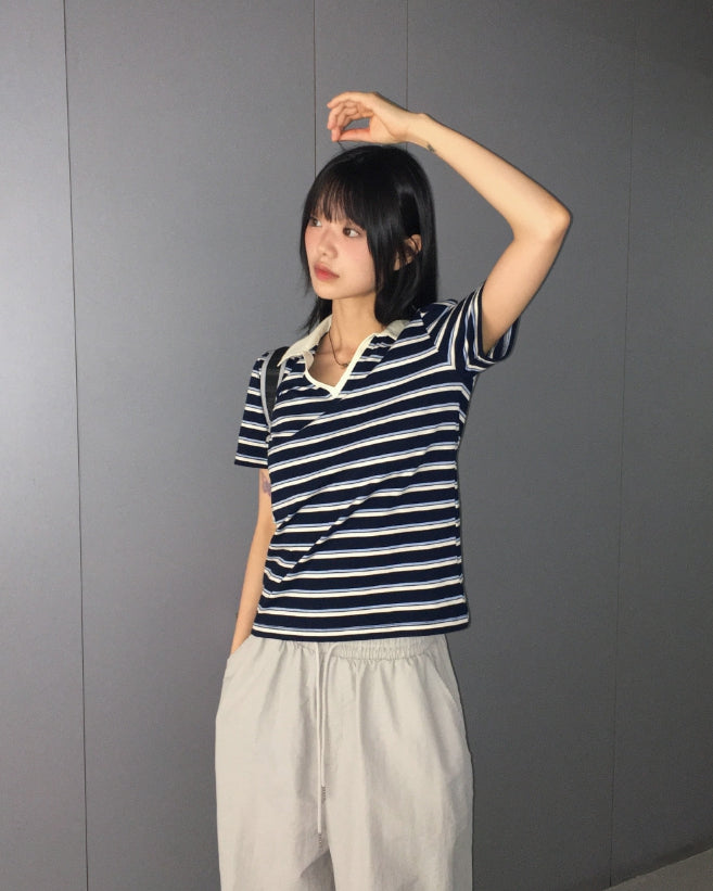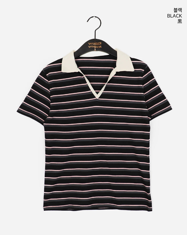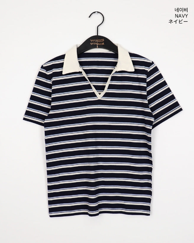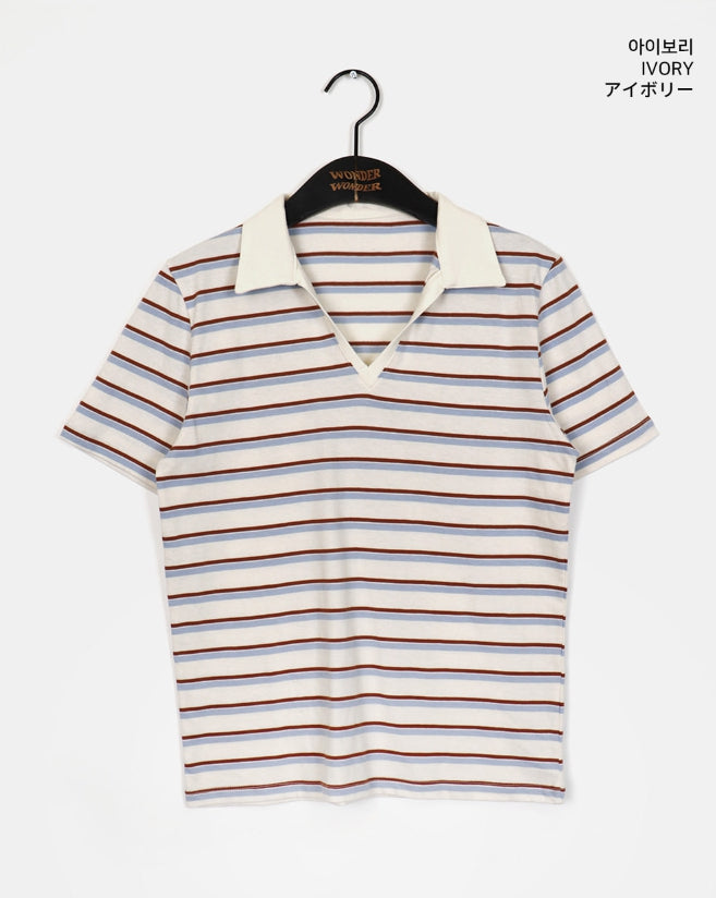 Morphol Western Stripe PK Collar Short-Sleeved T-shirt