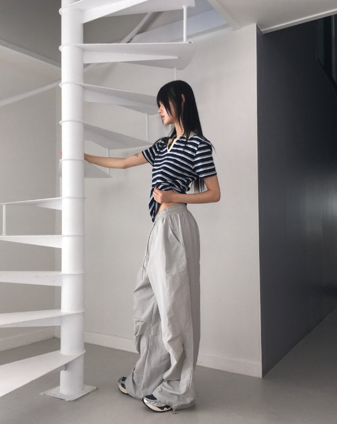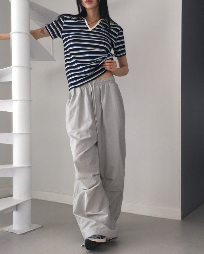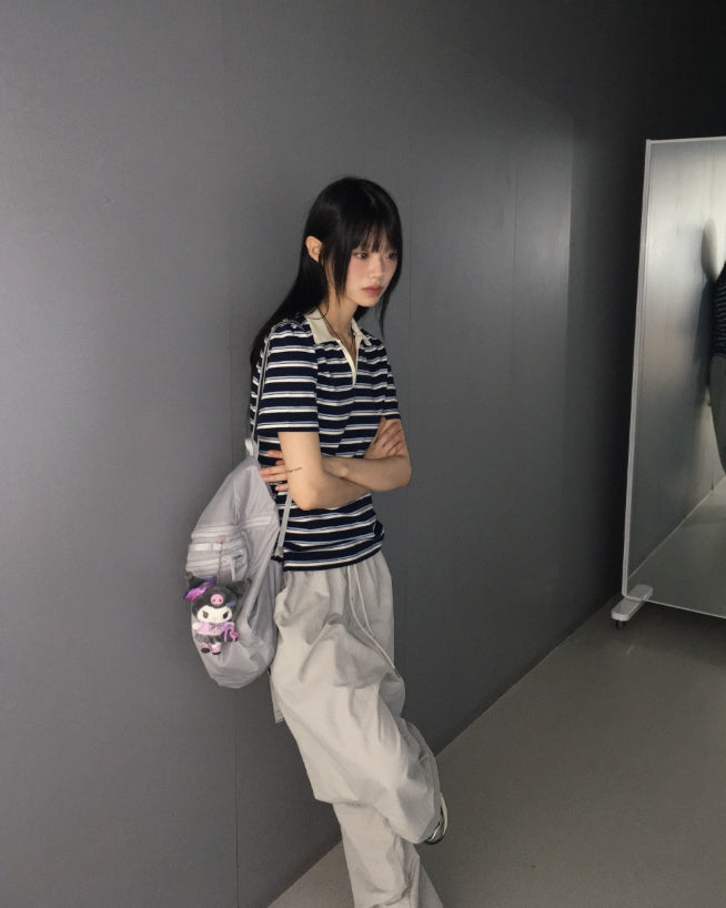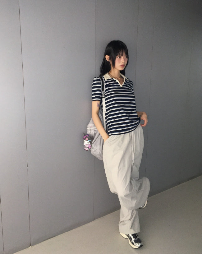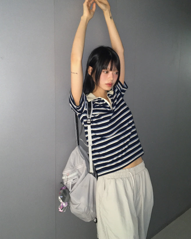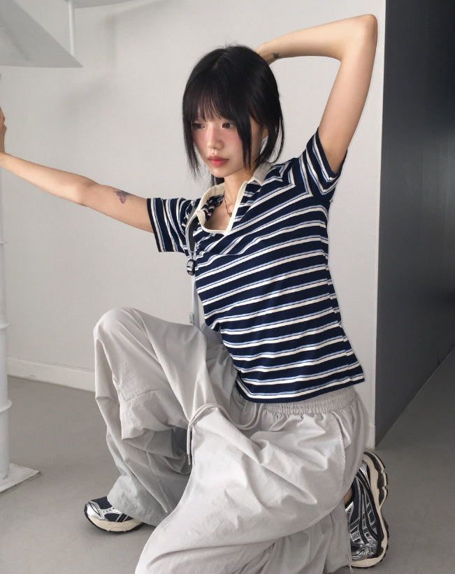 Morphol Western Stripe PK Collar Short-Sleeved T-shirt