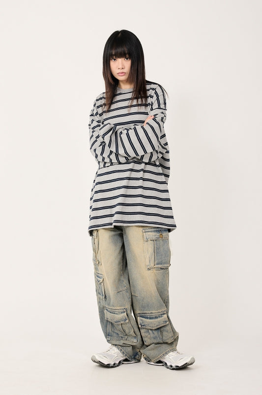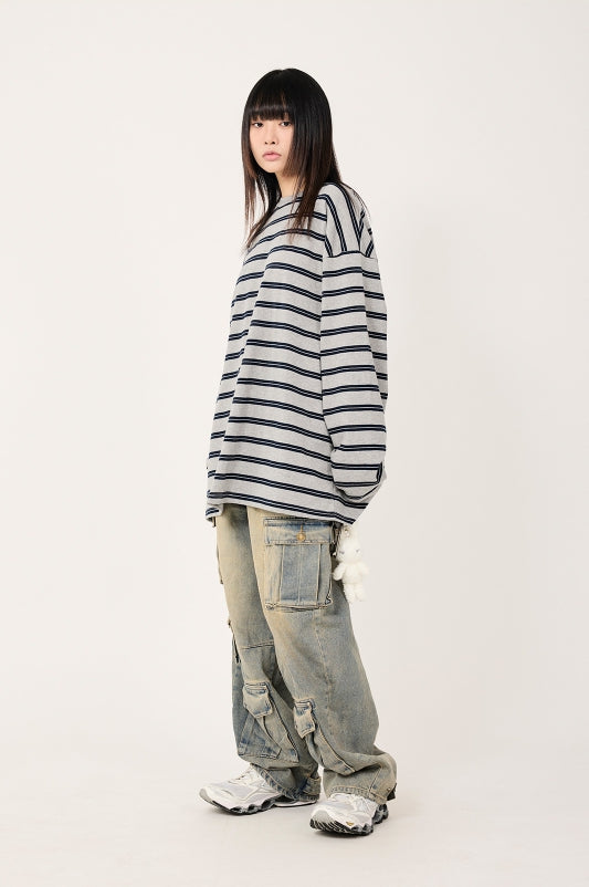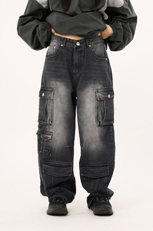 マルチカーゴヘムスナップボタンヘビーデニムパンツ