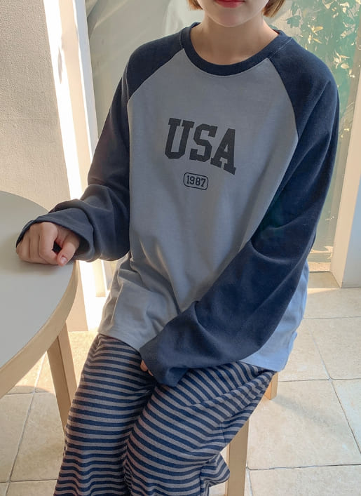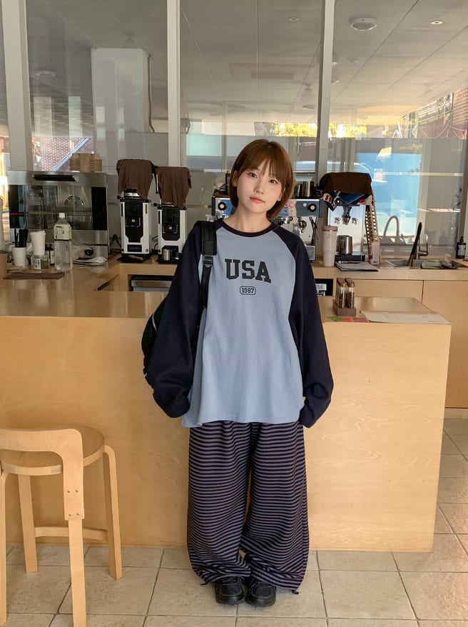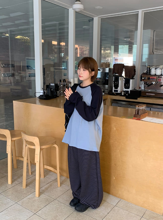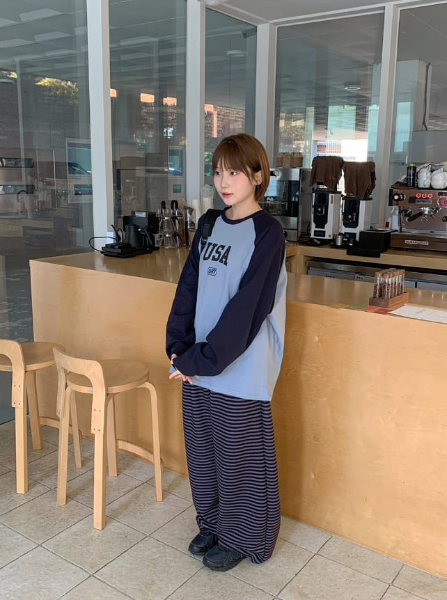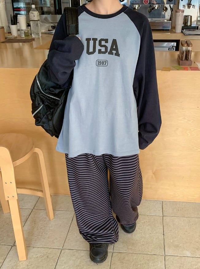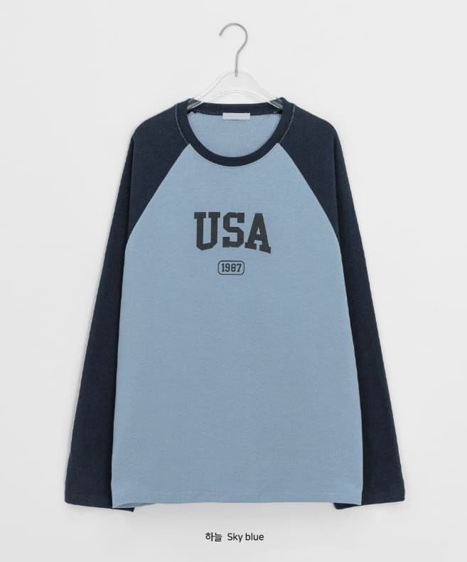Nontus Lettering Raglan Color Matching Long Sleeve Tee