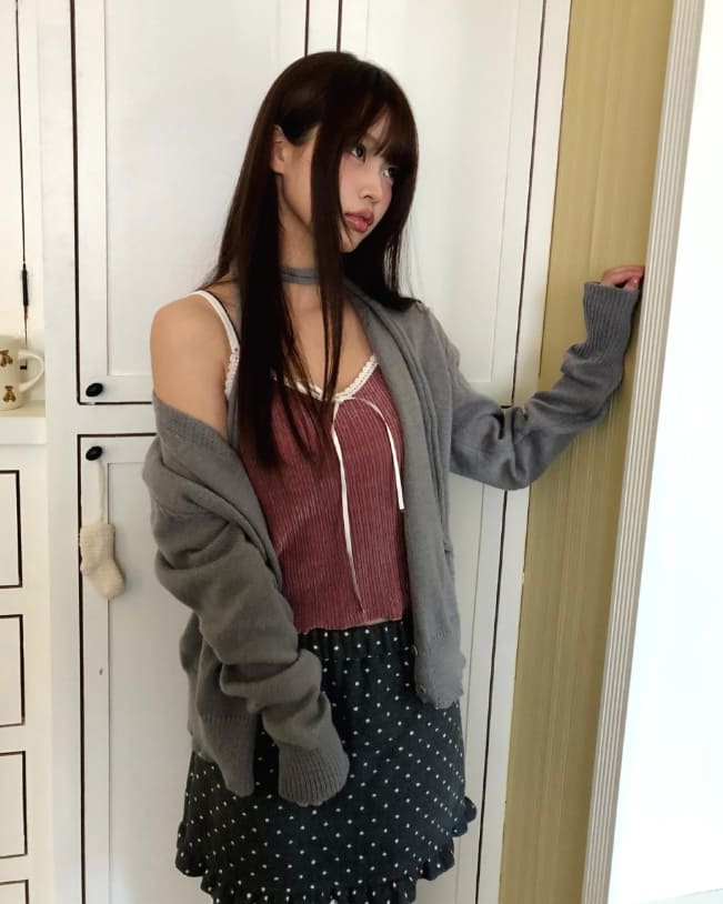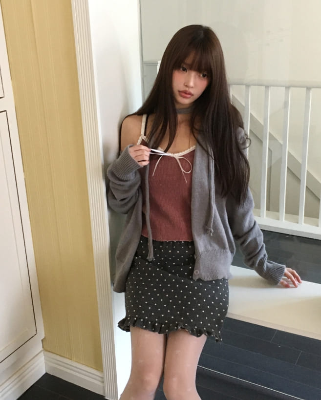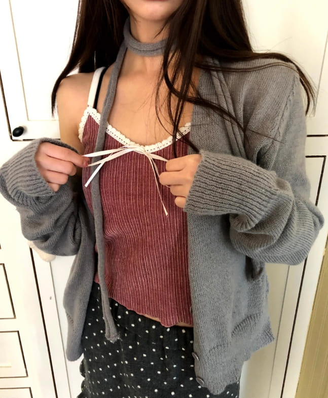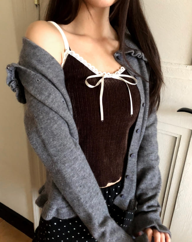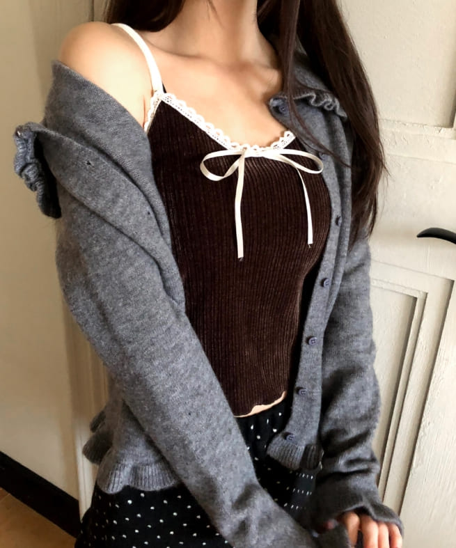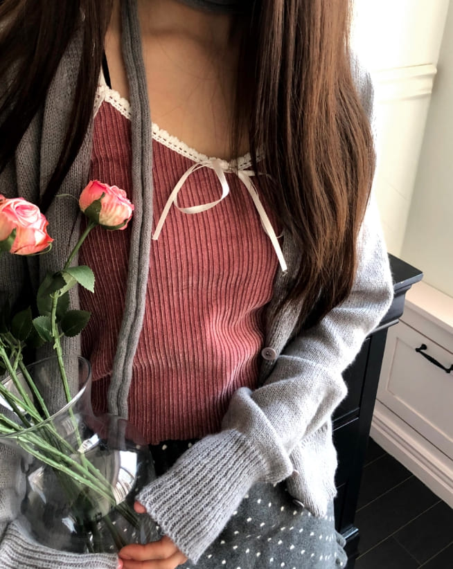 ヌリリボンレースリブベルベットキャミソール