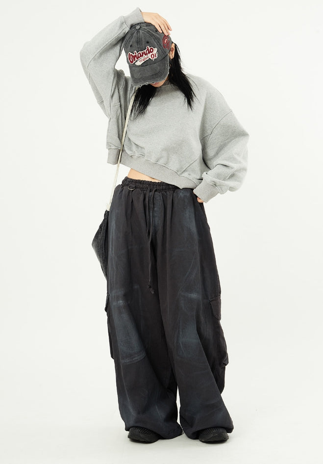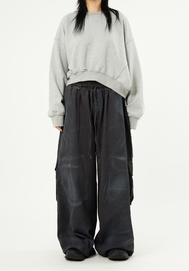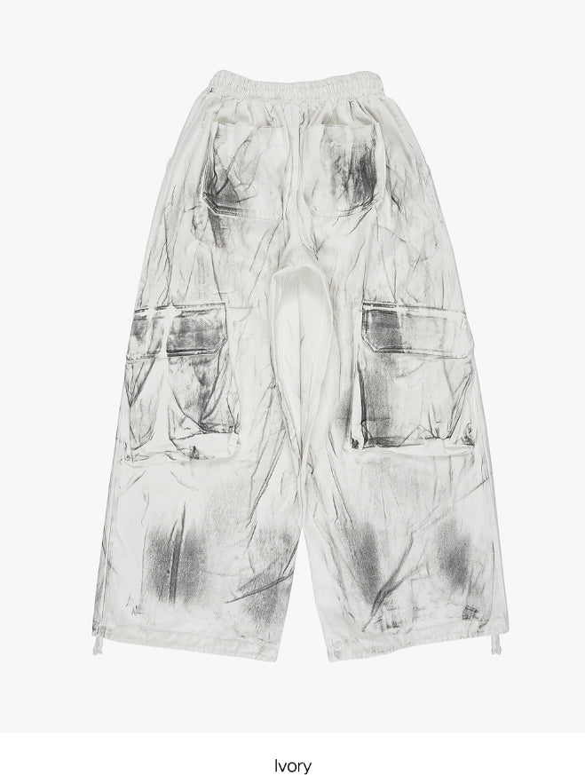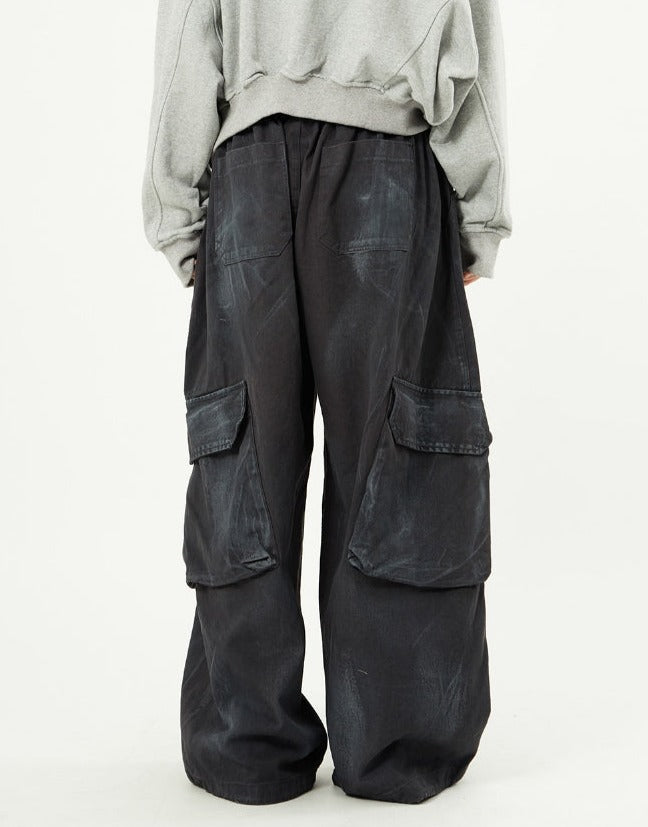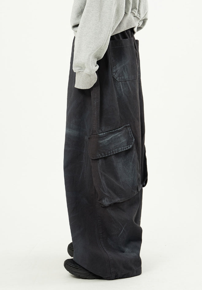 オイルウォッシドバックカーゴワイドバンディングパンツ