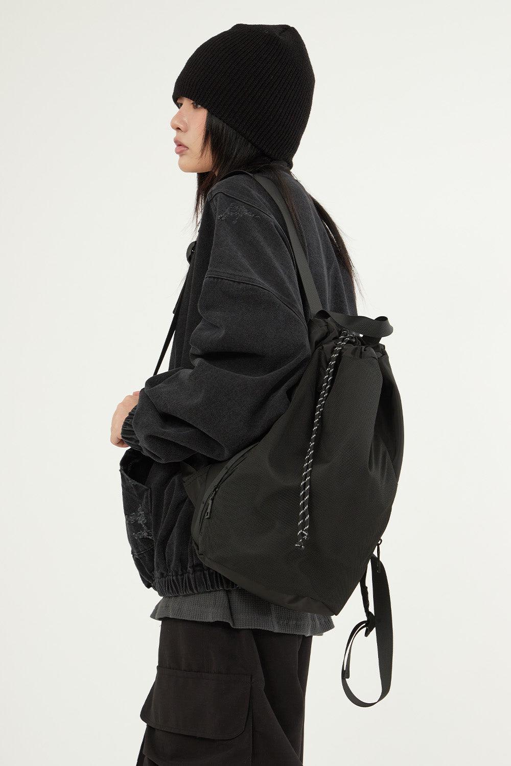 Our draw string net backpack