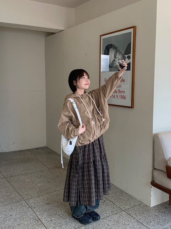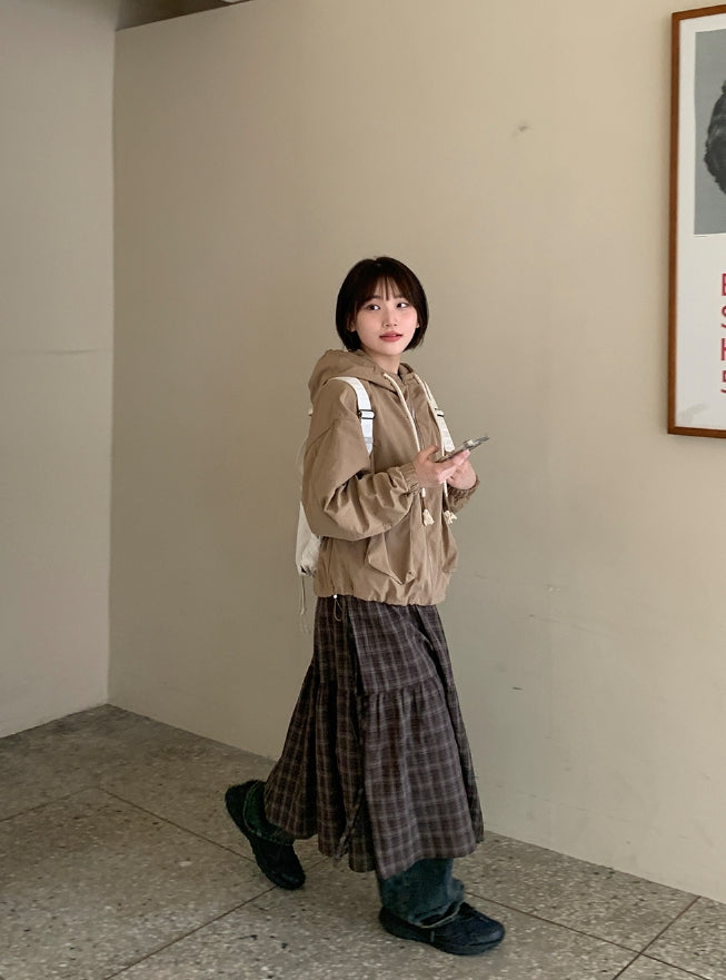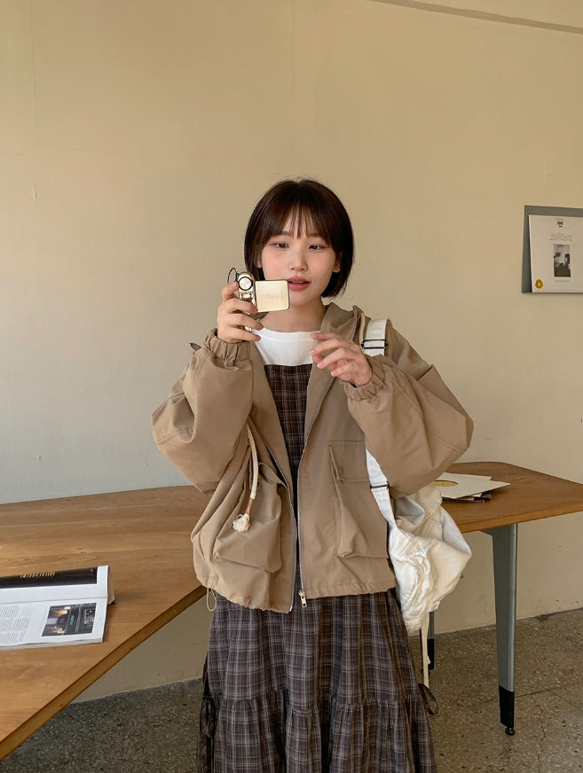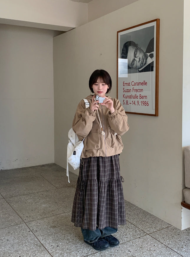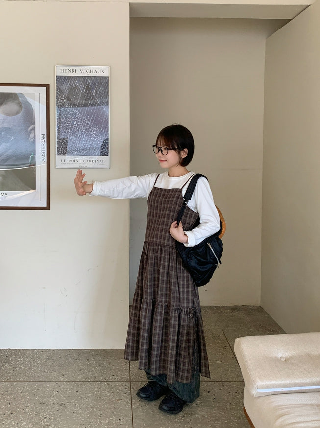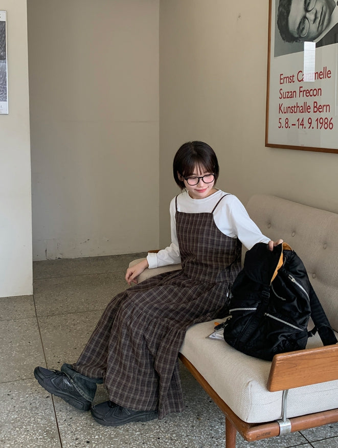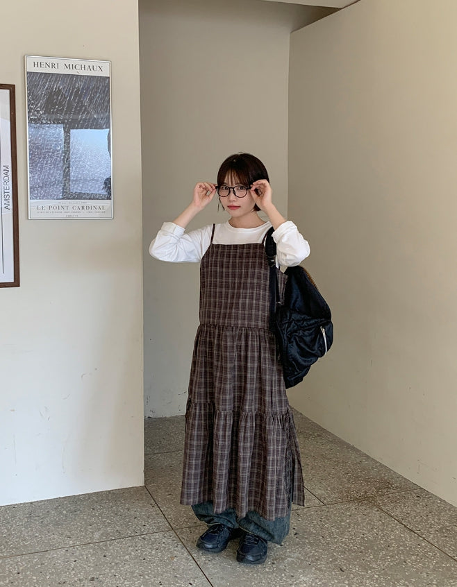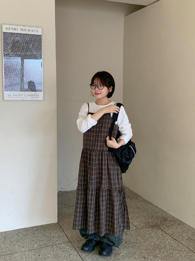 ポケルチェックレイヤードロングスリーブレスワンピース