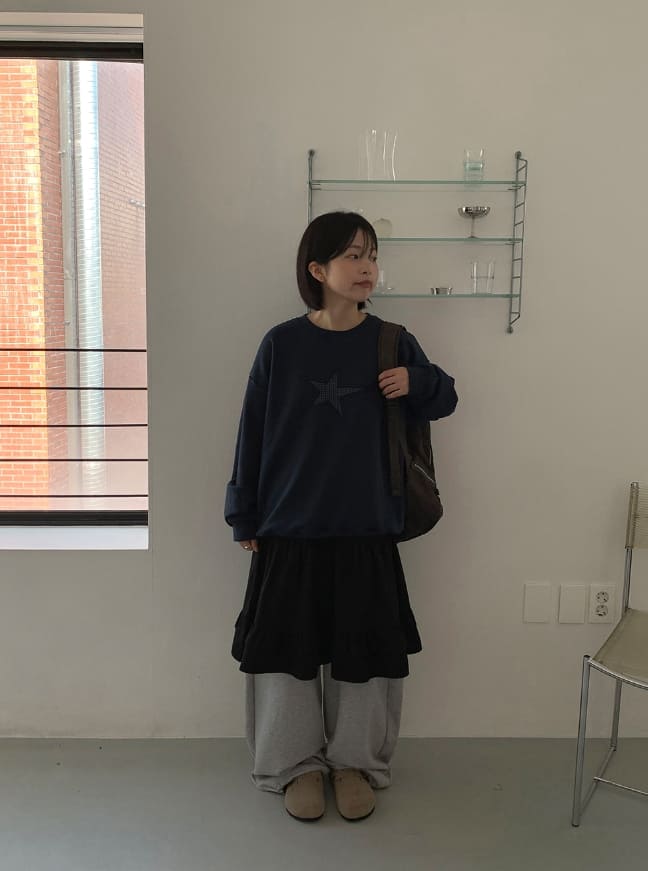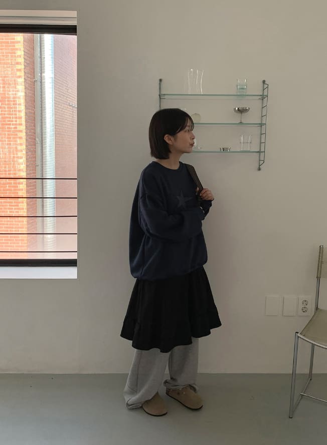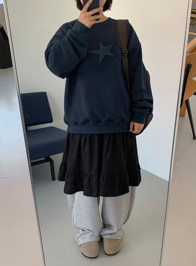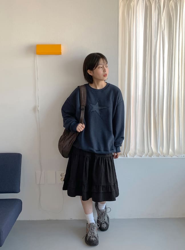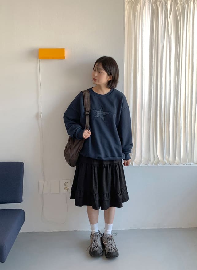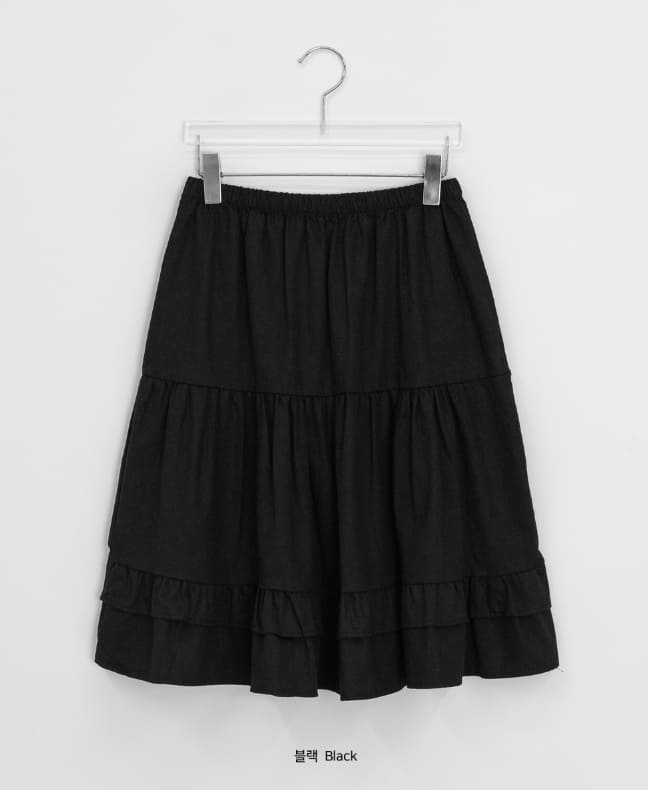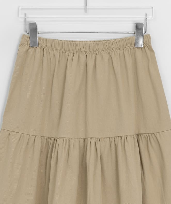 Potto Cotton Frill Tiered Banding Midi Skirt