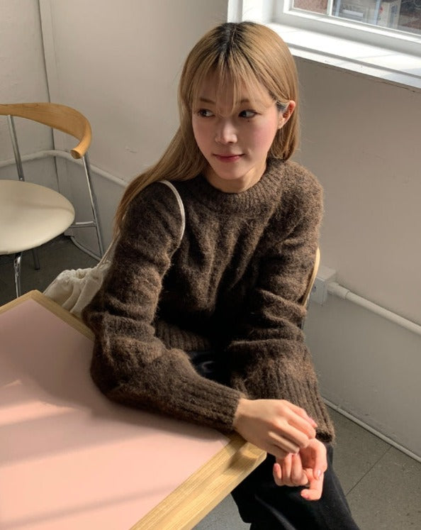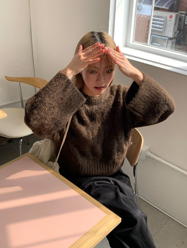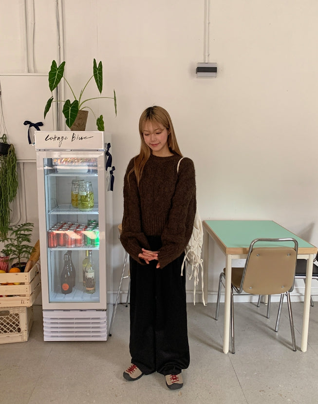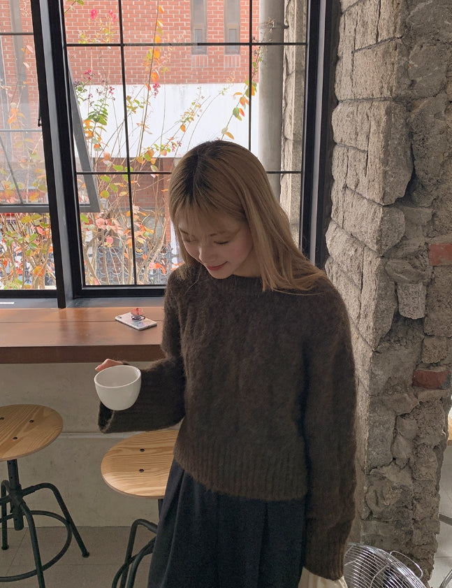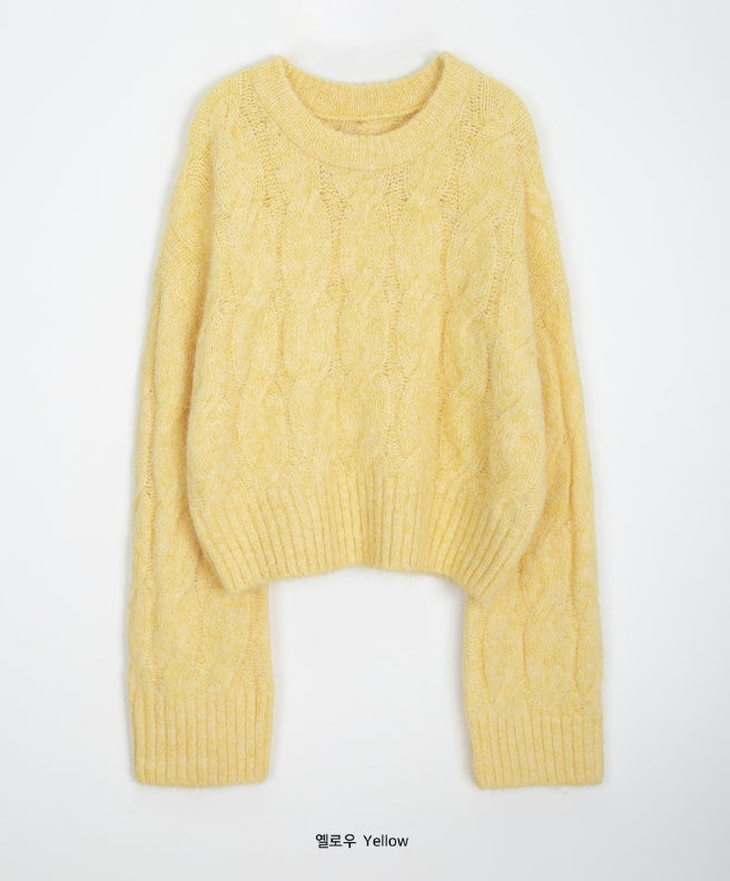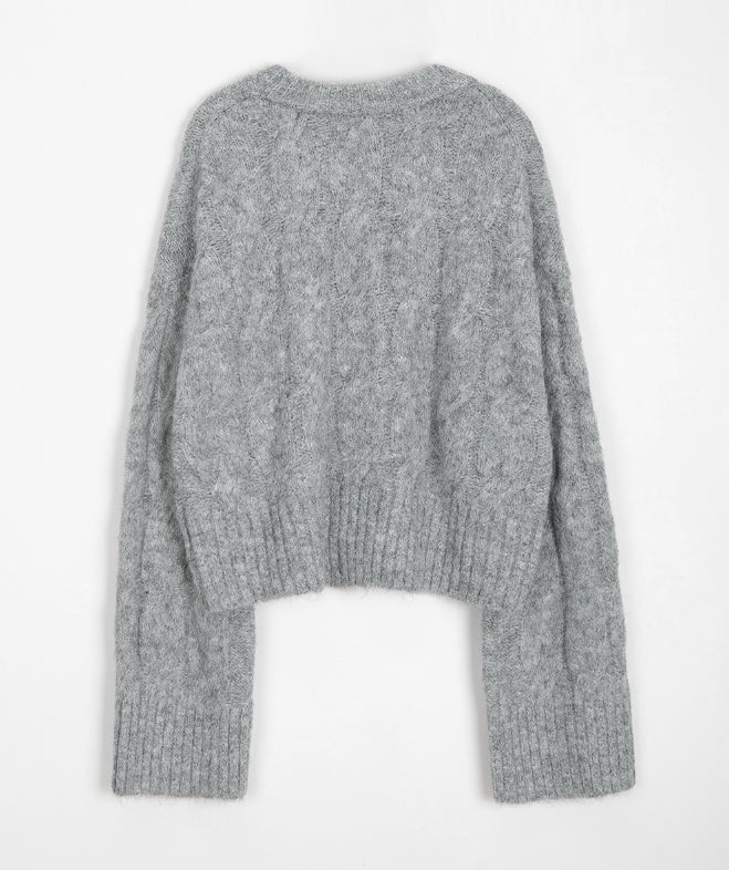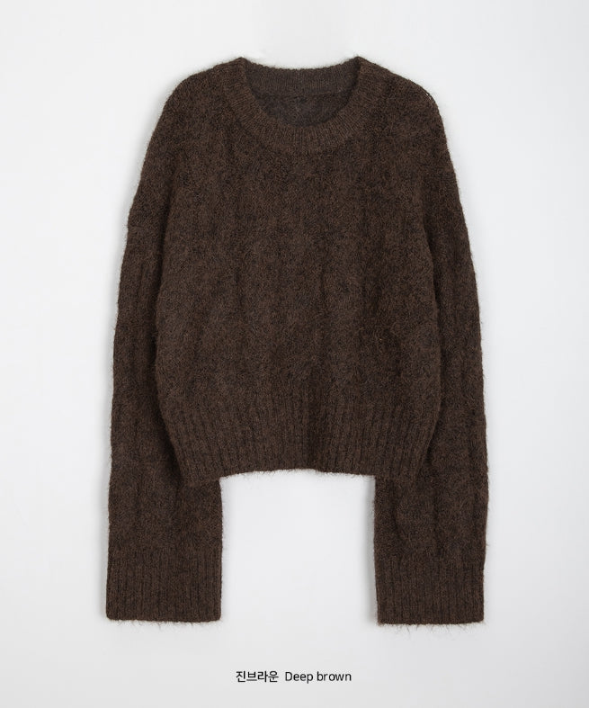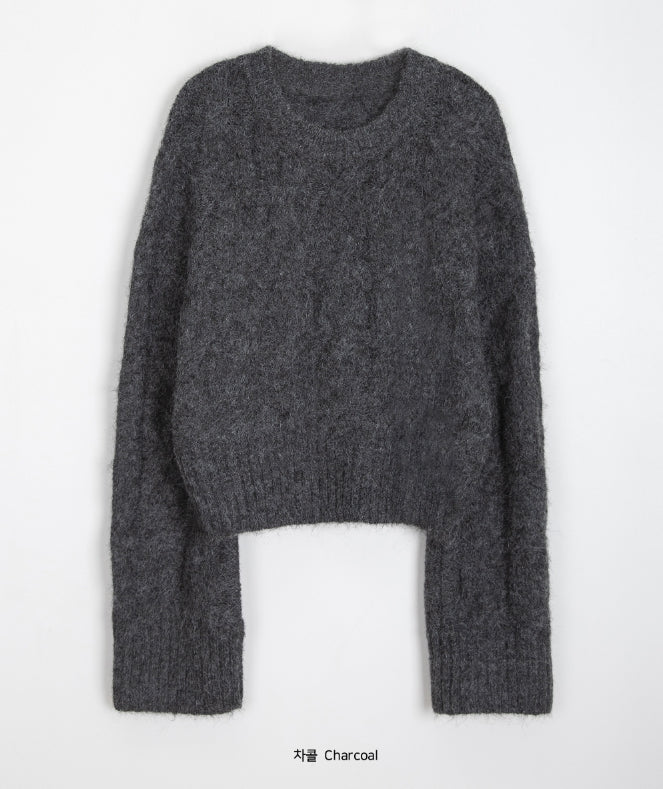 Puden Hairy Wool Cable Crop Knit