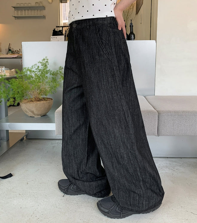 Puiki banding wide denim pants