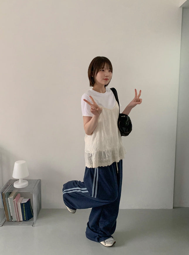 Pulende Line Color Matching Track Banding Wide Pants