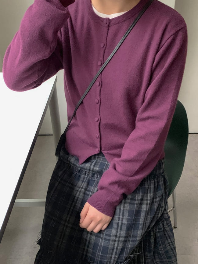 Qkel Color Round Knit Cardigan