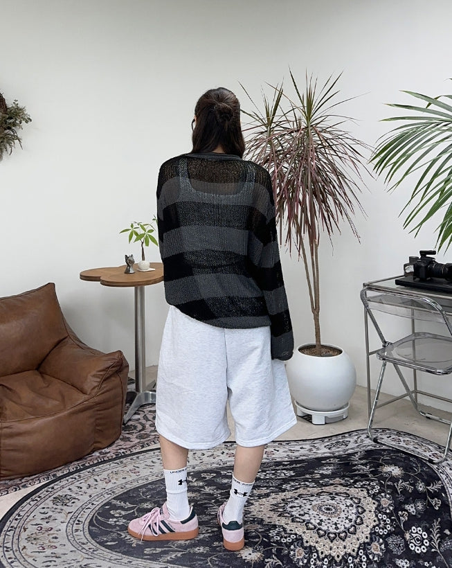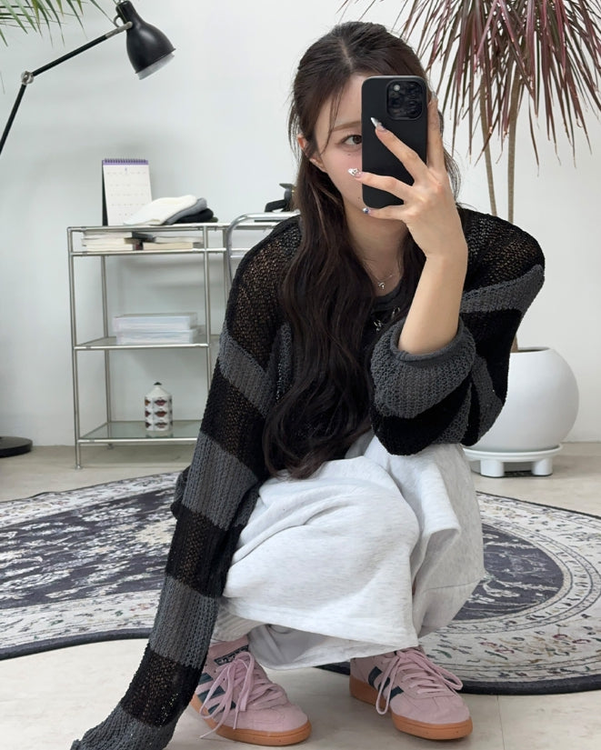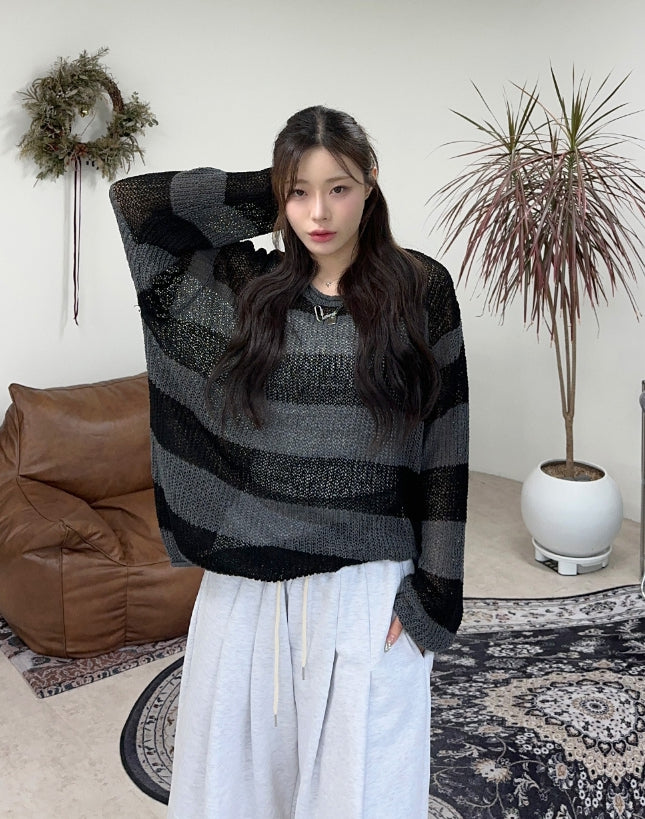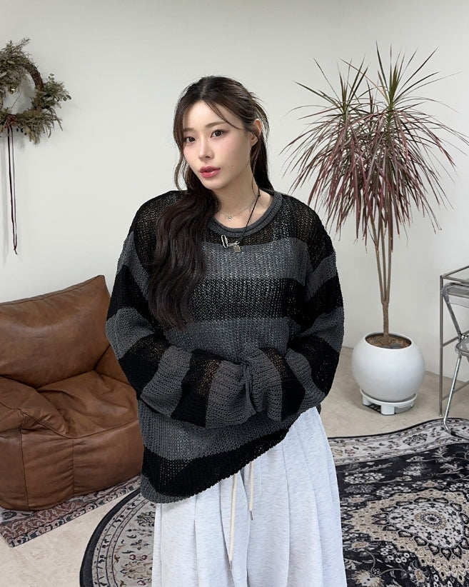 Rical Stripe Mesh Knit