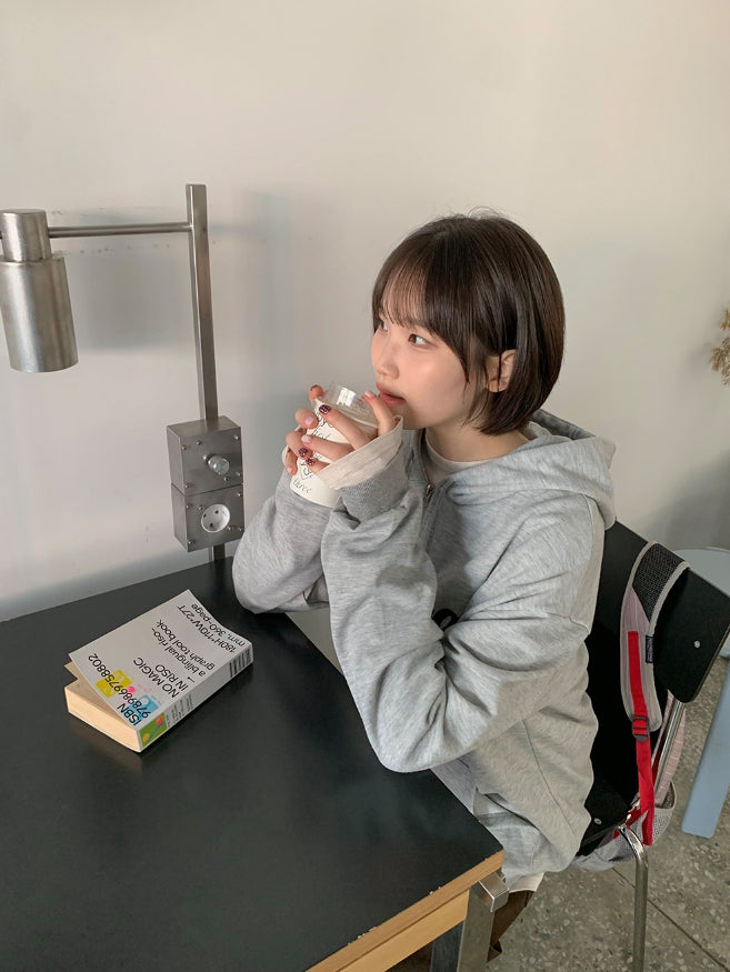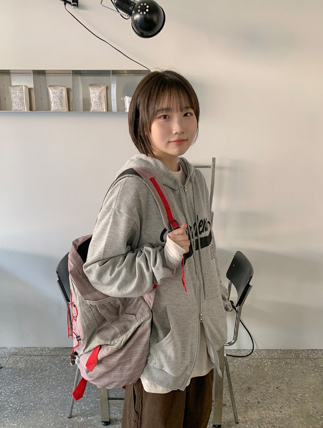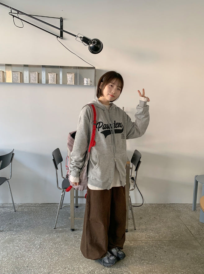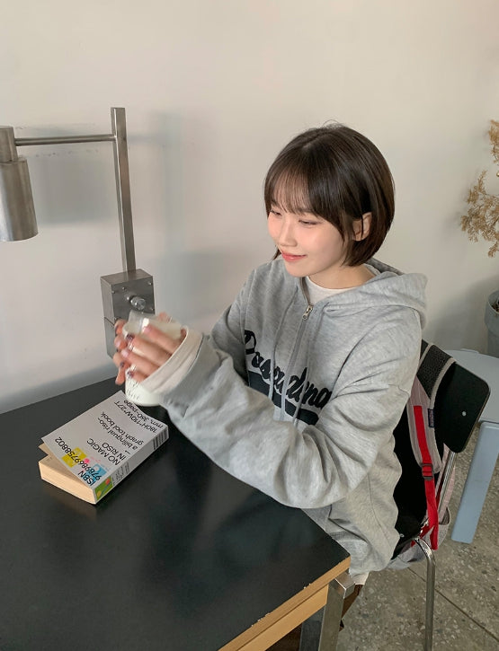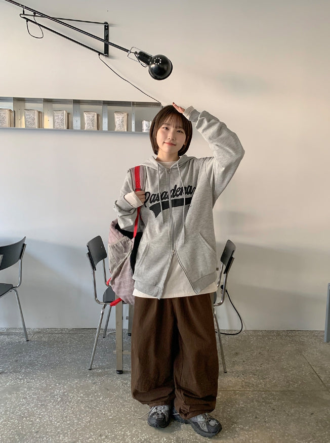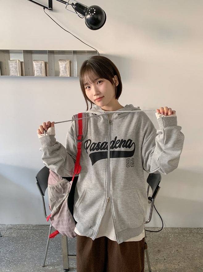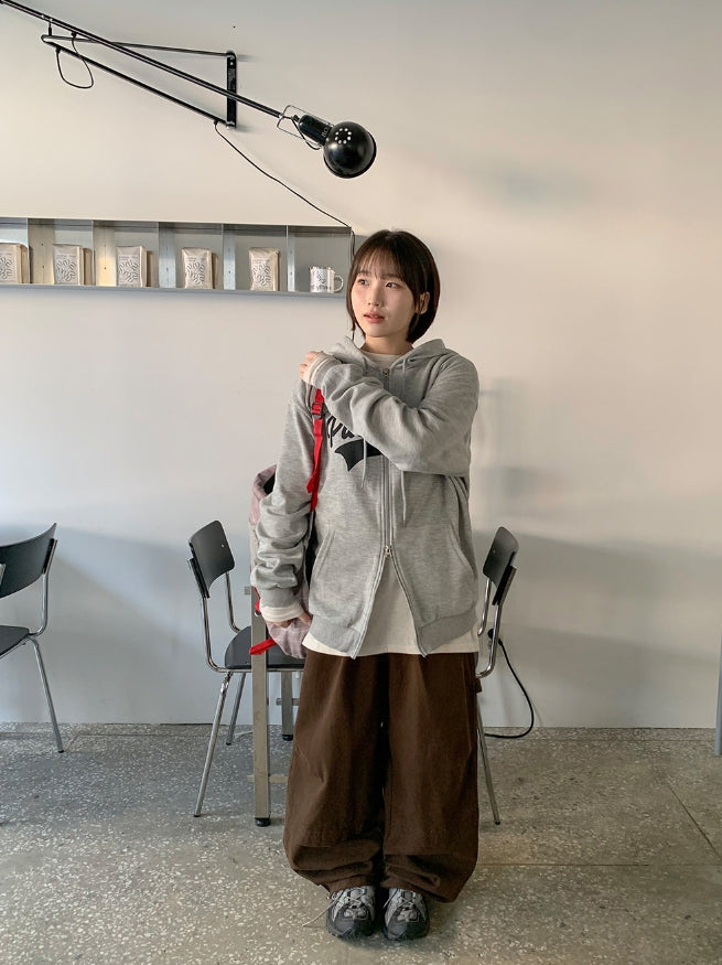 ルコトツーウェイレタリングプリンティングオーバーフードジップアップ