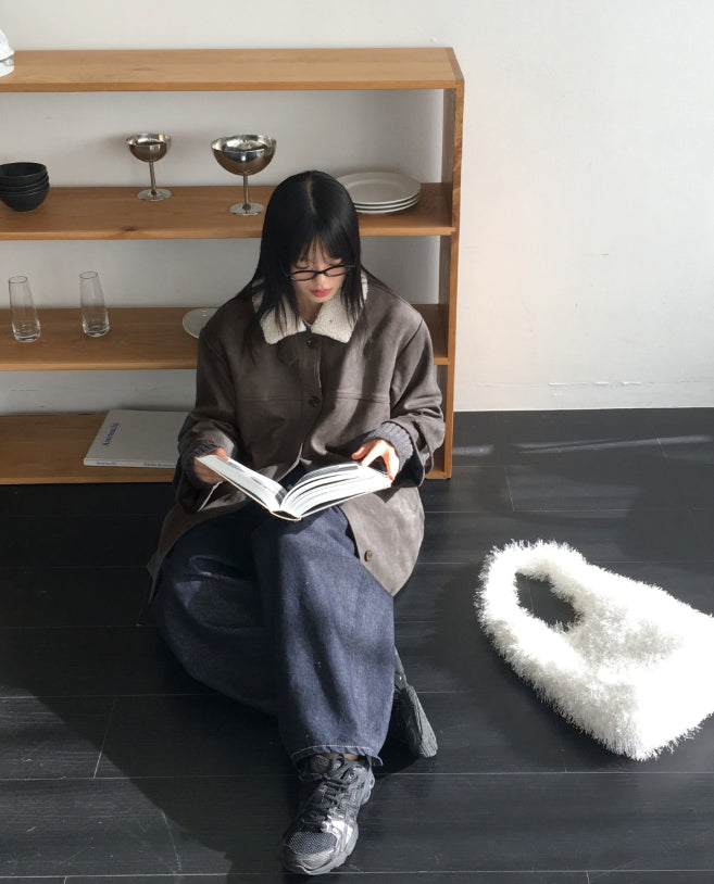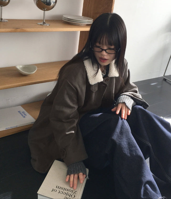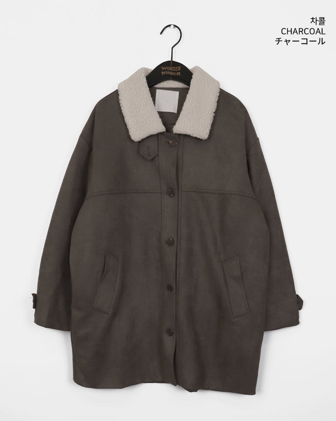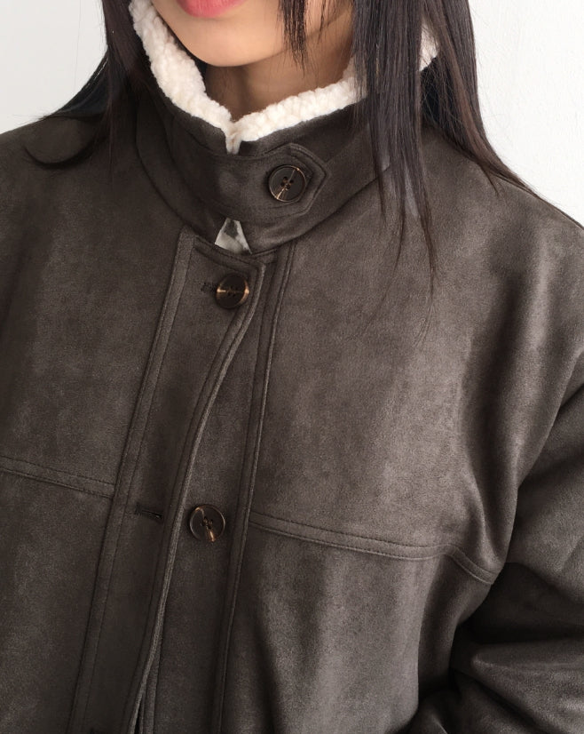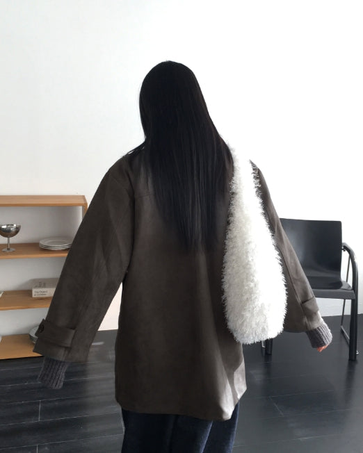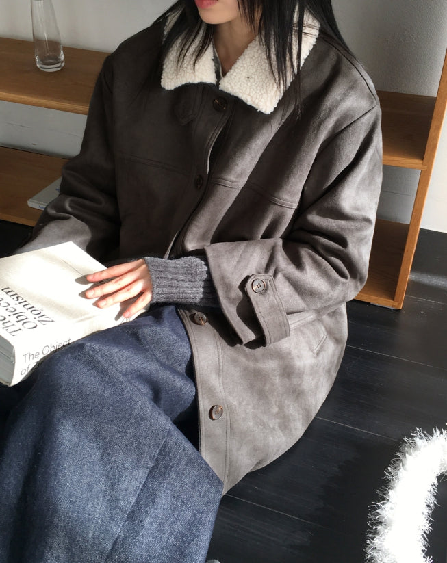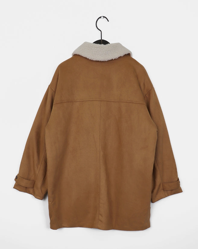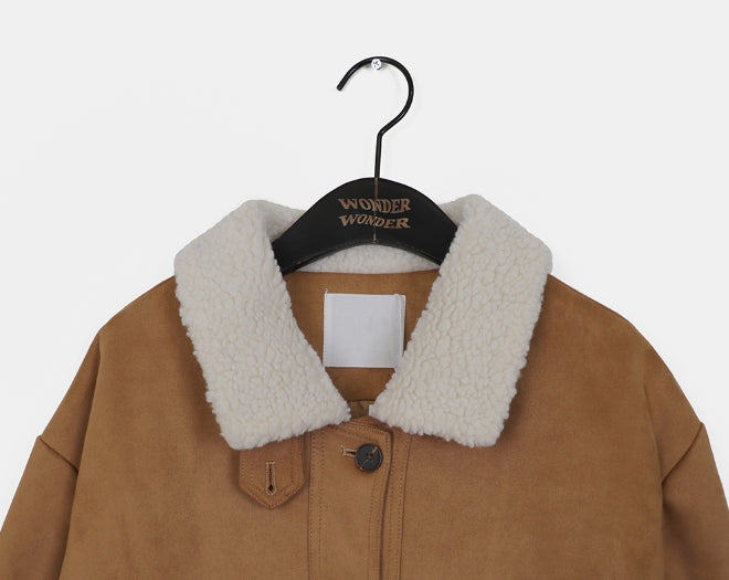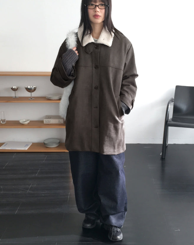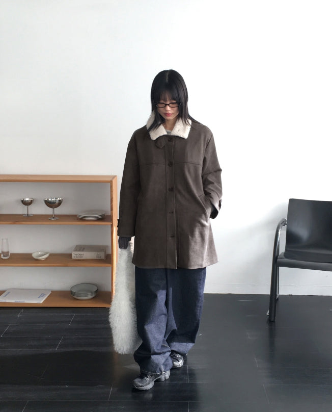 Agil Fluffy Collar Suede Quilted Midi Coat