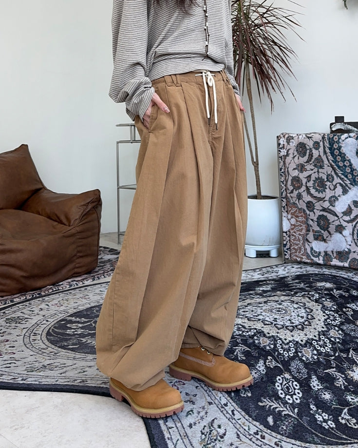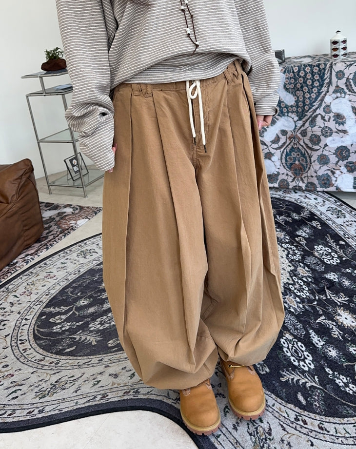 -ONE SIZE (ウエスト(ゴム)72-96 ヒップ132 股上32 股下77 もも周り90 裾周り40 総丈109)
