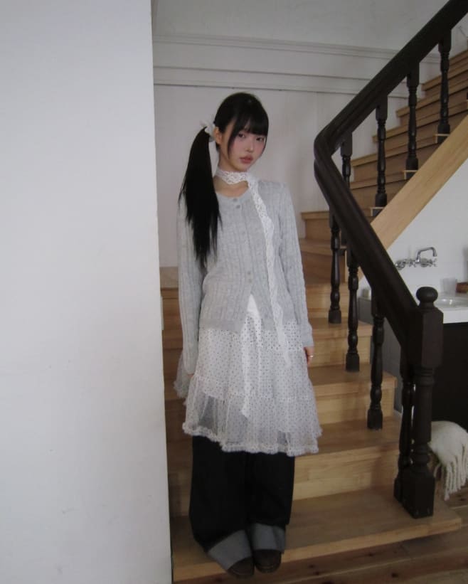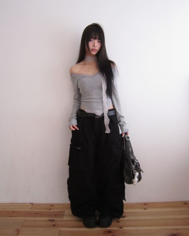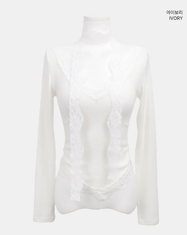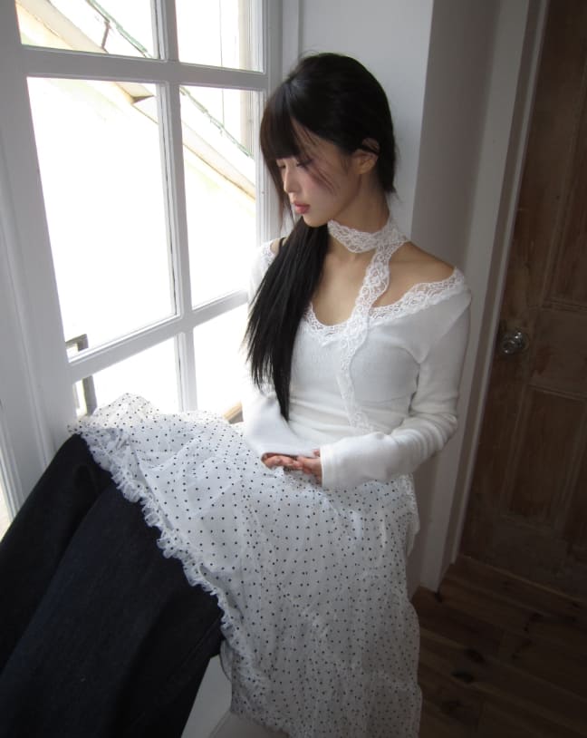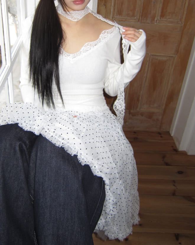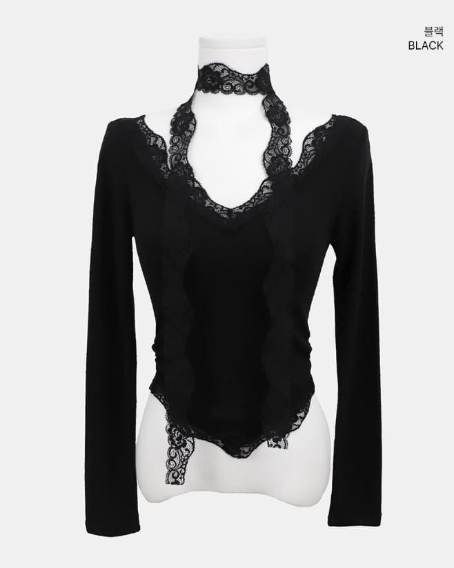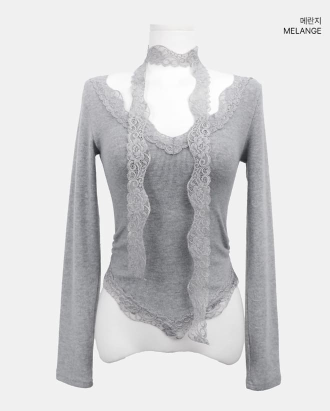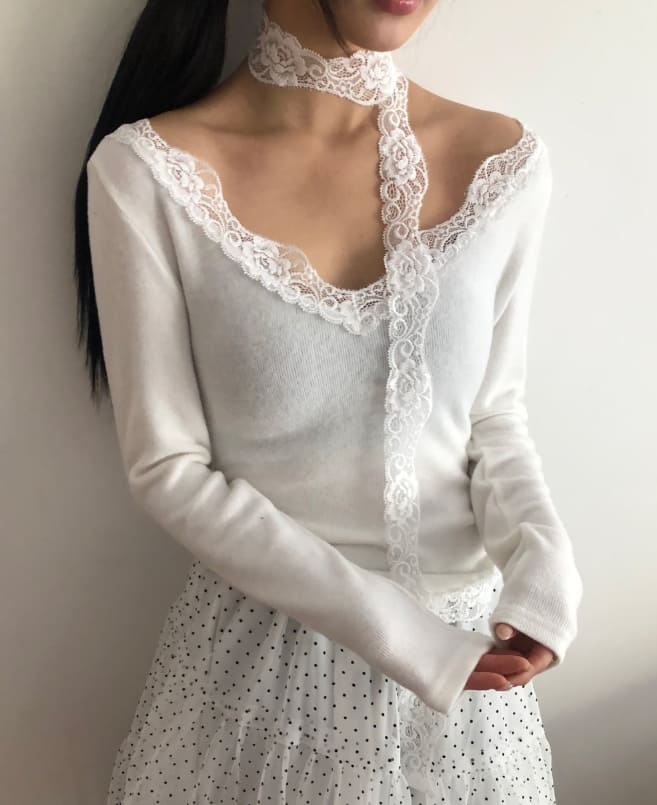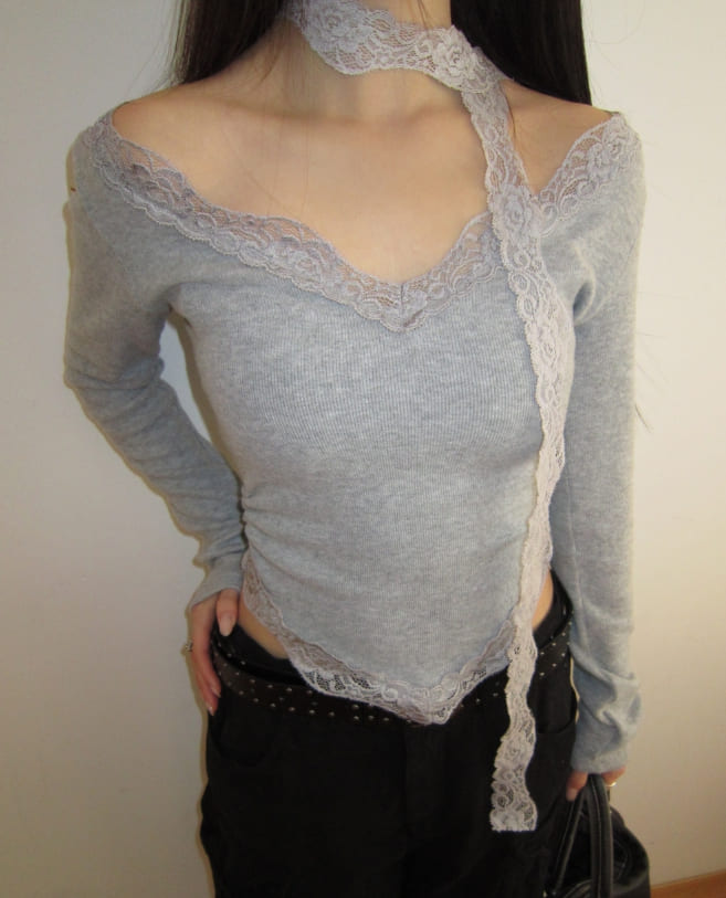 [Scarf Set] Kimen Lace Brushed Crop Long Sleeve T-Shirt
