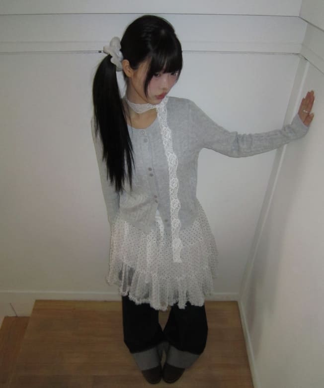 [スカーフセット]キメンレース起毛クロップ長袖Tシャツ