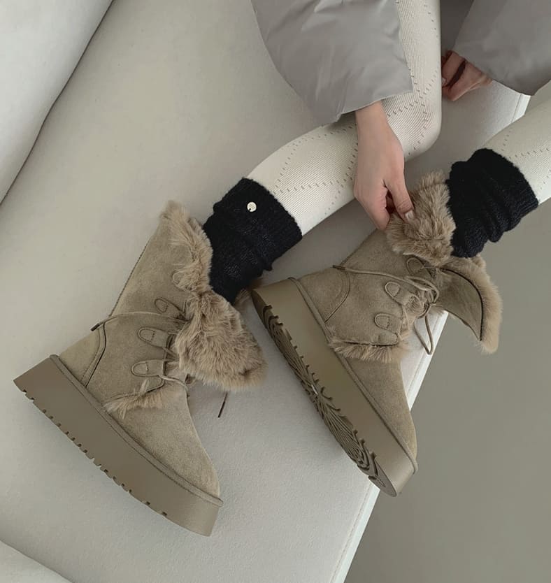 Suede Platform Sole Middle Walker Folding Sheepskin Boots