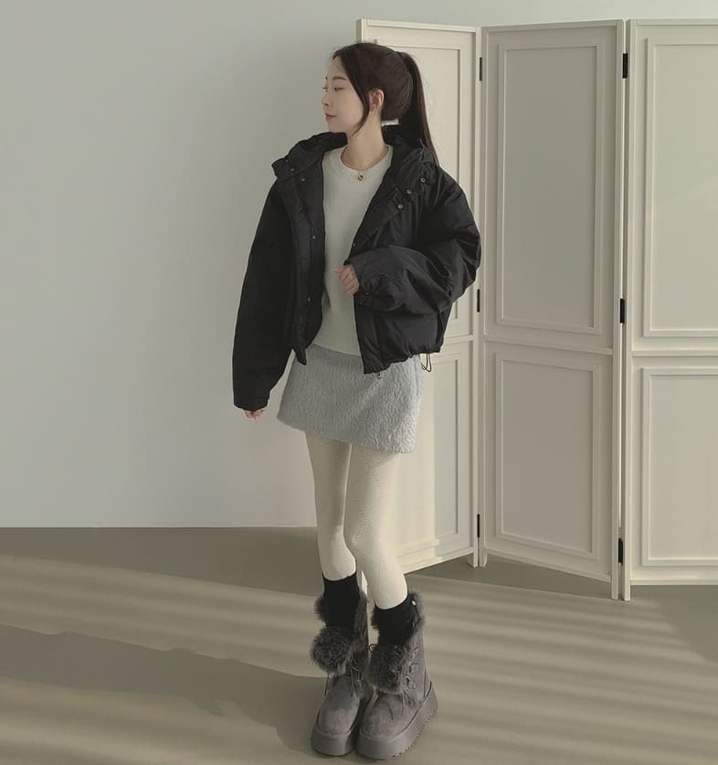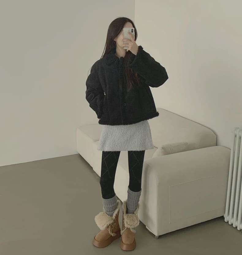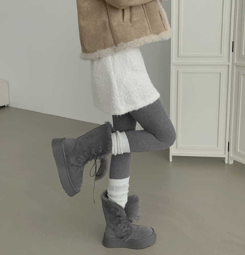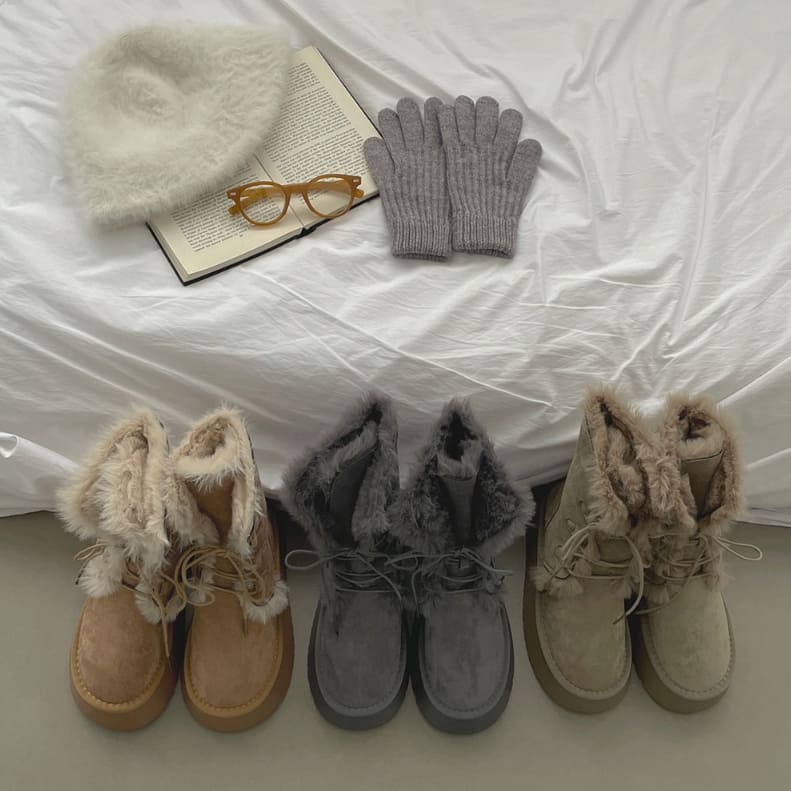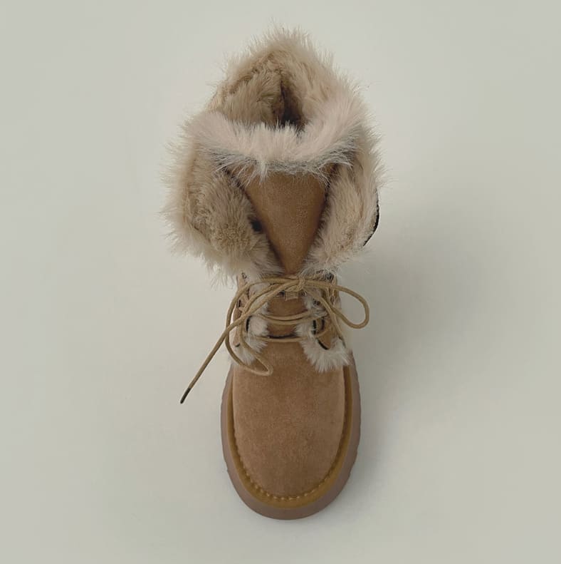 スエード厚底ミドルウォーカーフォルディングムートンブーツ