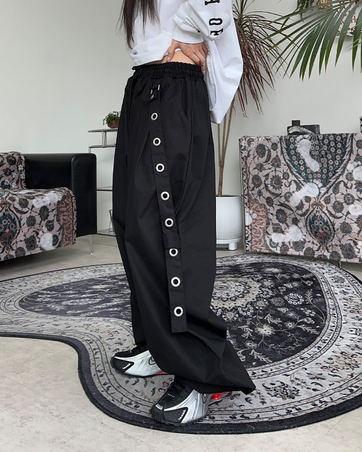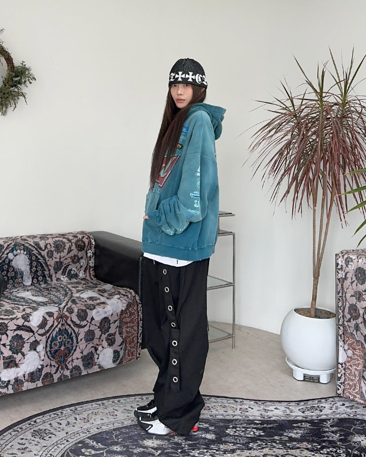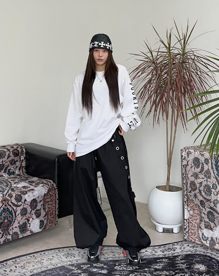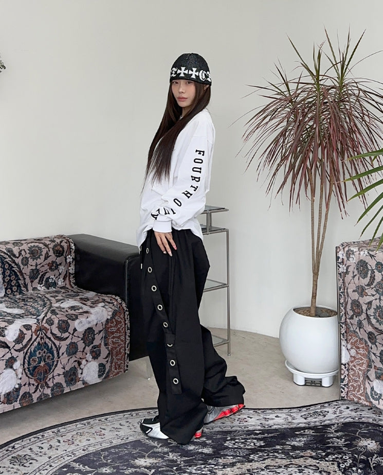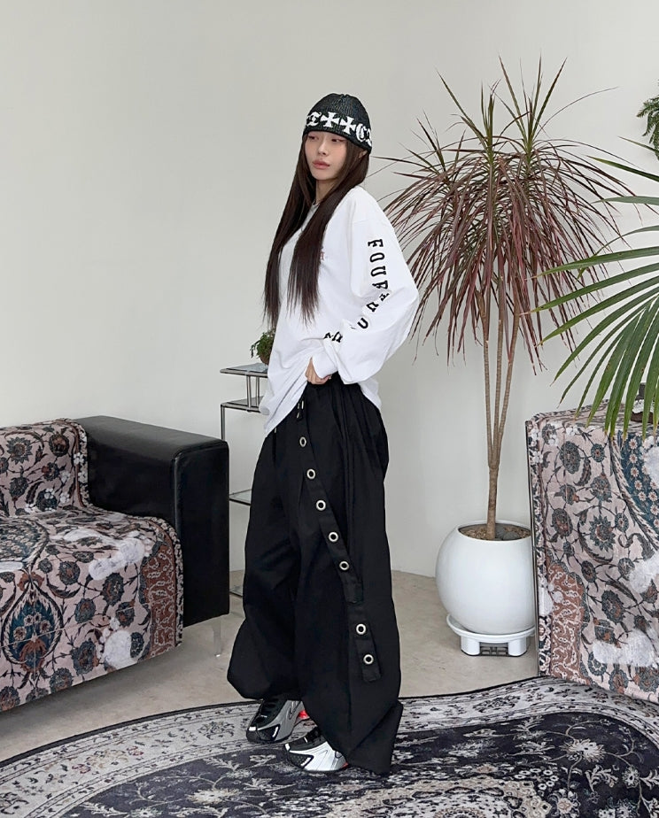 -ONE SIZE (ウエスト(ゴム)74-120 ヒップ144 股上38 股下77 もも周り78 裾周り46-60 総丈115)