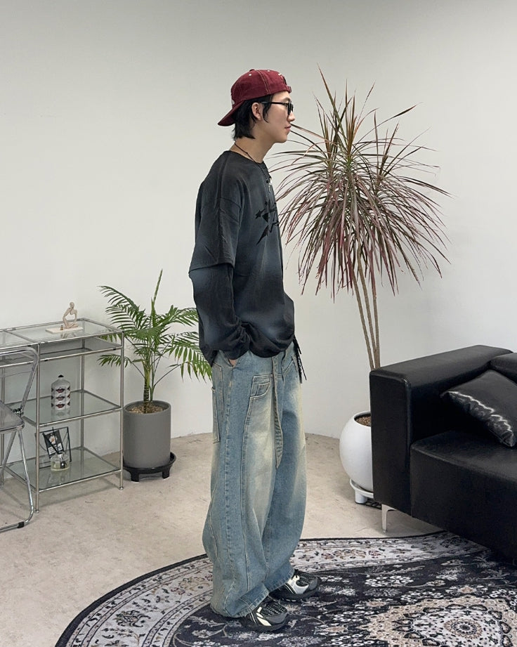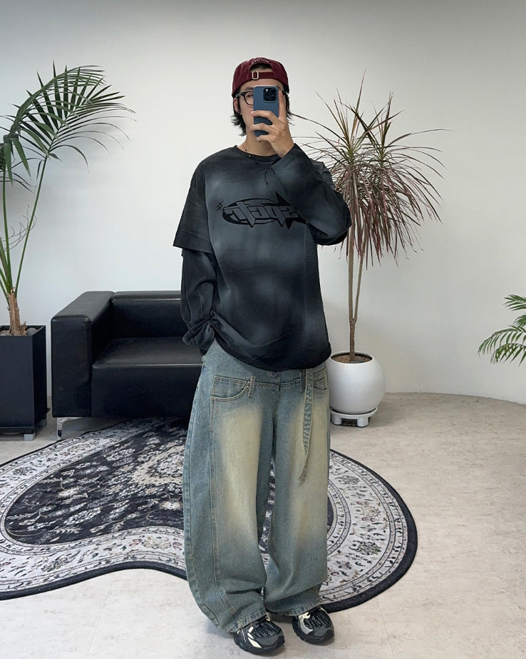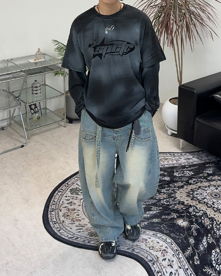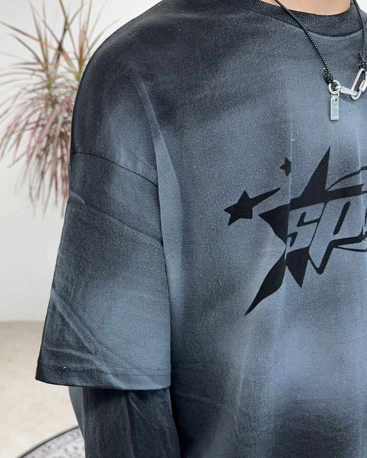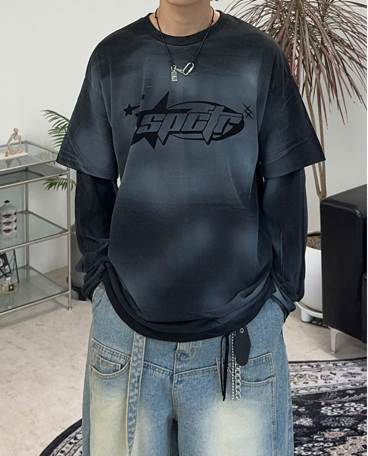 テッカーダーティーウォッシュ加工レイヤードTシャツ