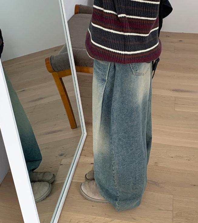 テコウォッシングピンタックバルーンワイドデニムパンツ