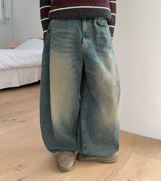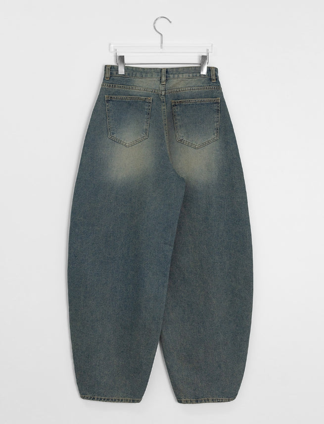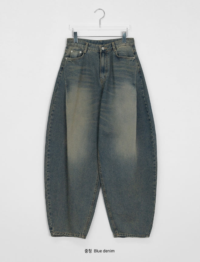 Teconi Washing Pintuck Balloon Wide Denim Pants