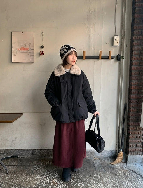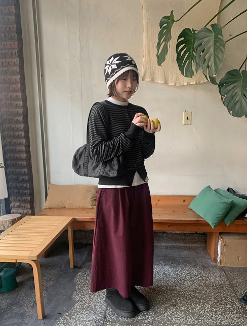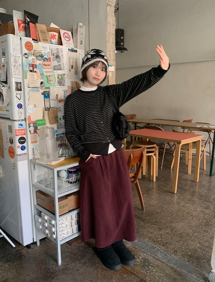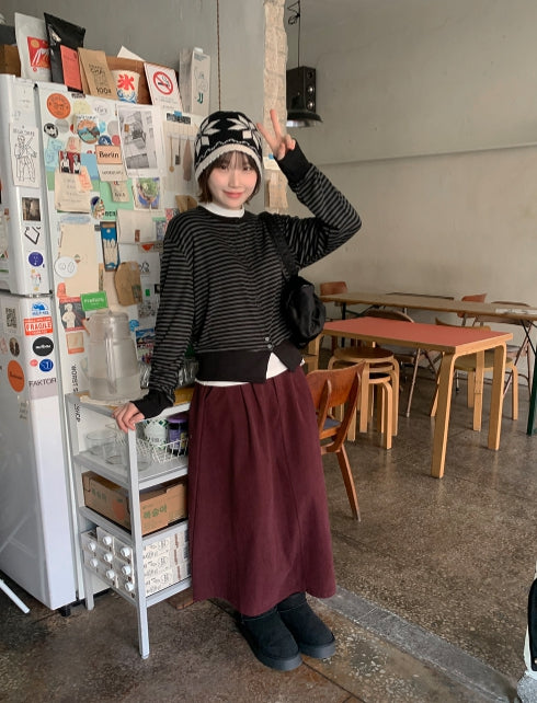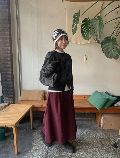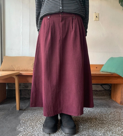 Tenico banding corduroy pintuck long skirt