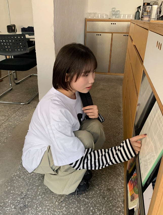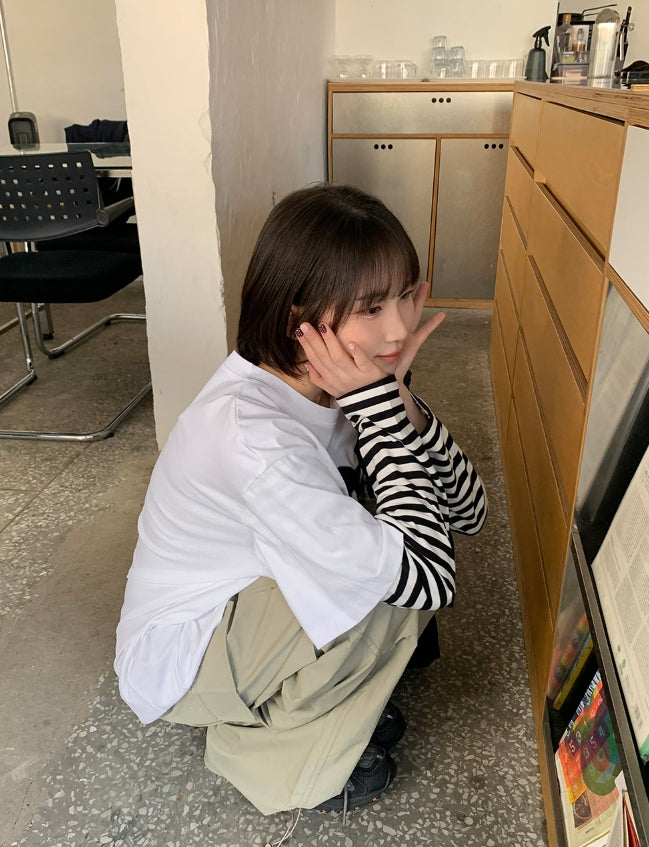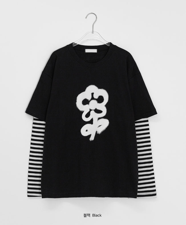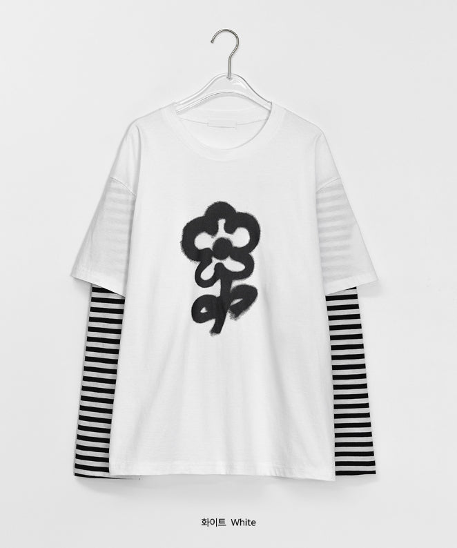 Tenshima Flower Stripe Layered Over Long Sleeve Tee