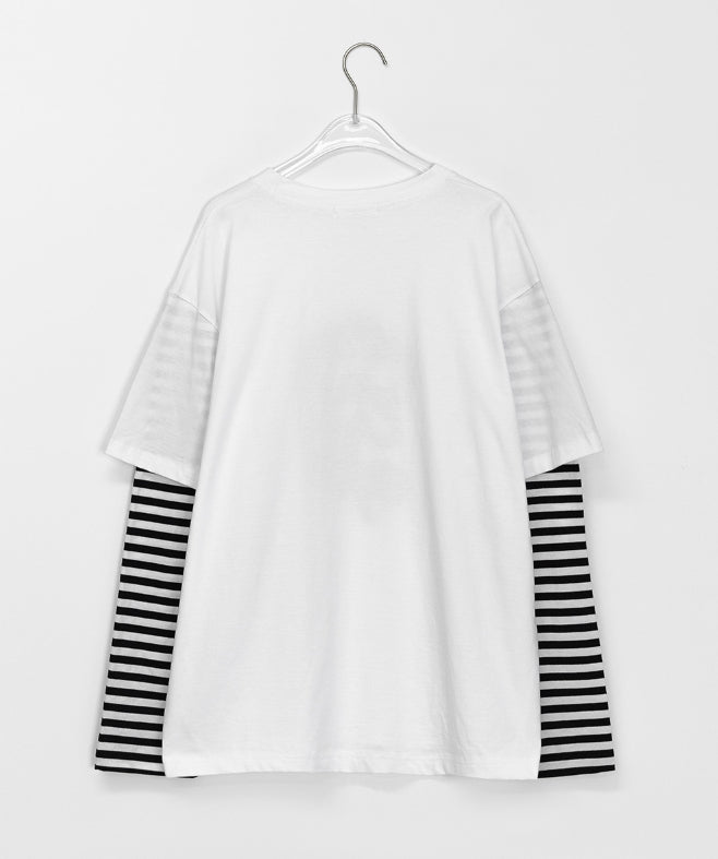 テンシマフラワーストライプレイヤードオーバー長袖Tシャツ