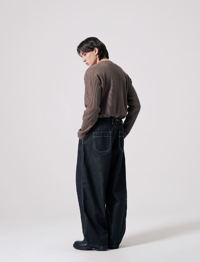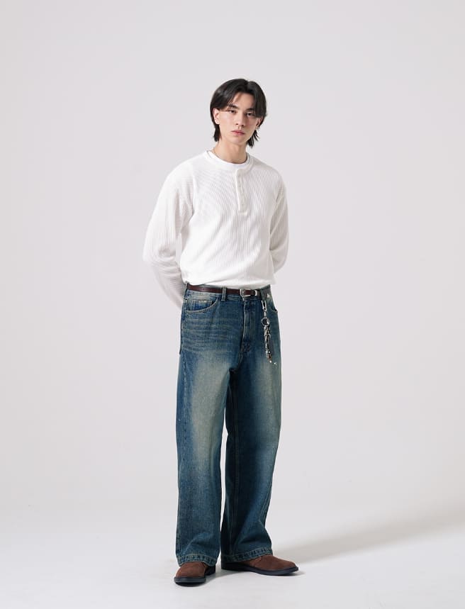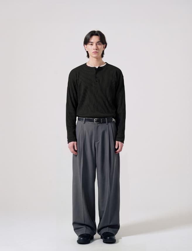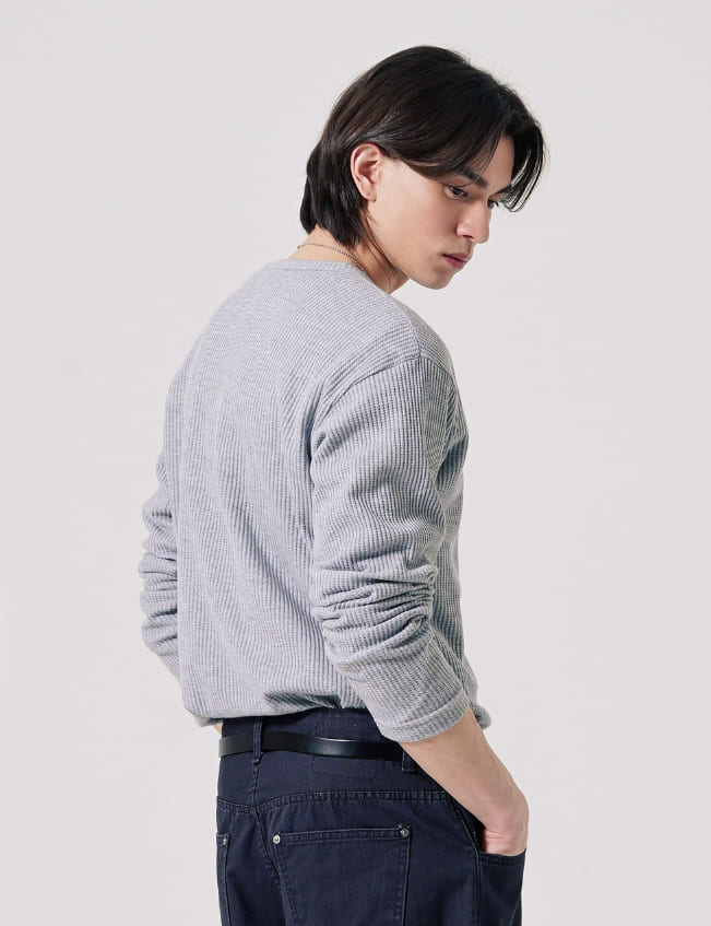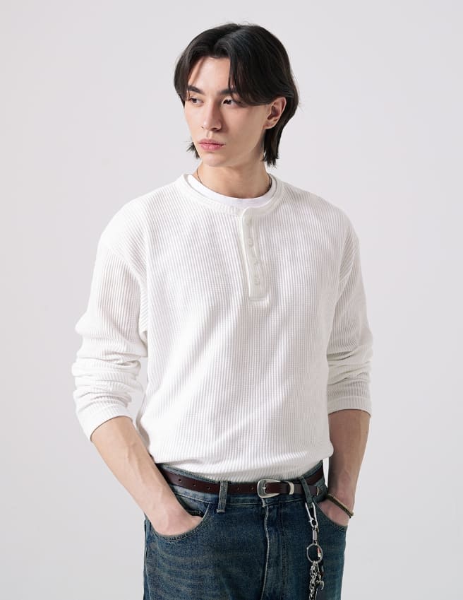 テクスチャーヘンリーネック長袖Tシャツ