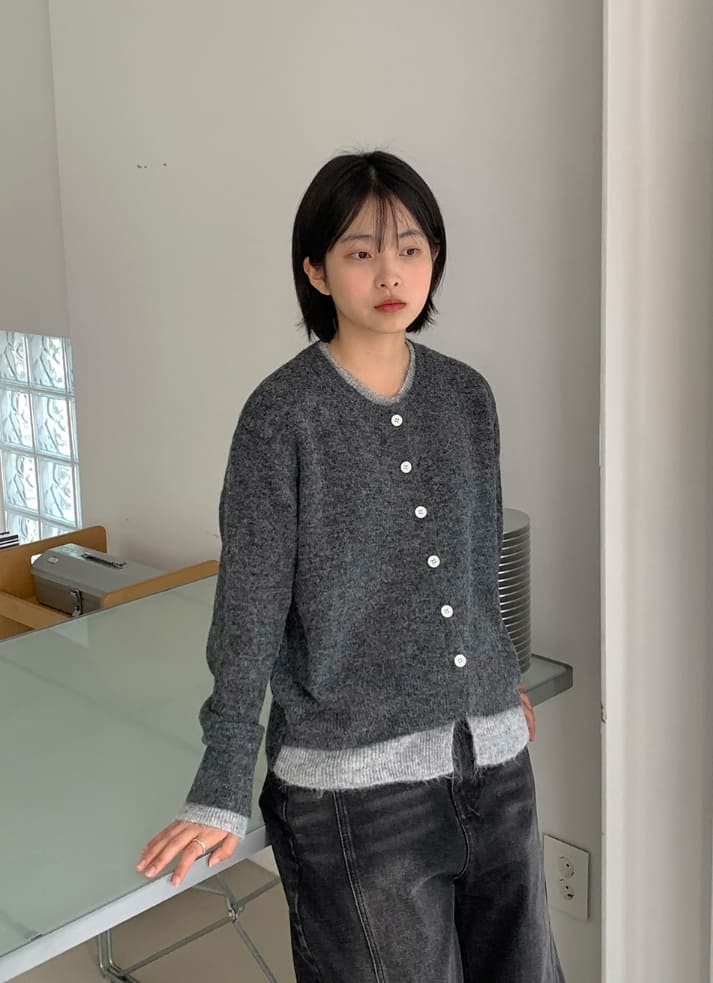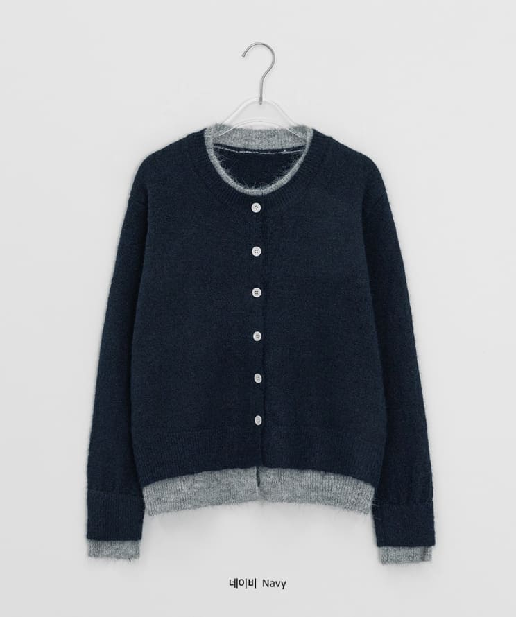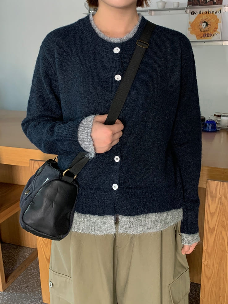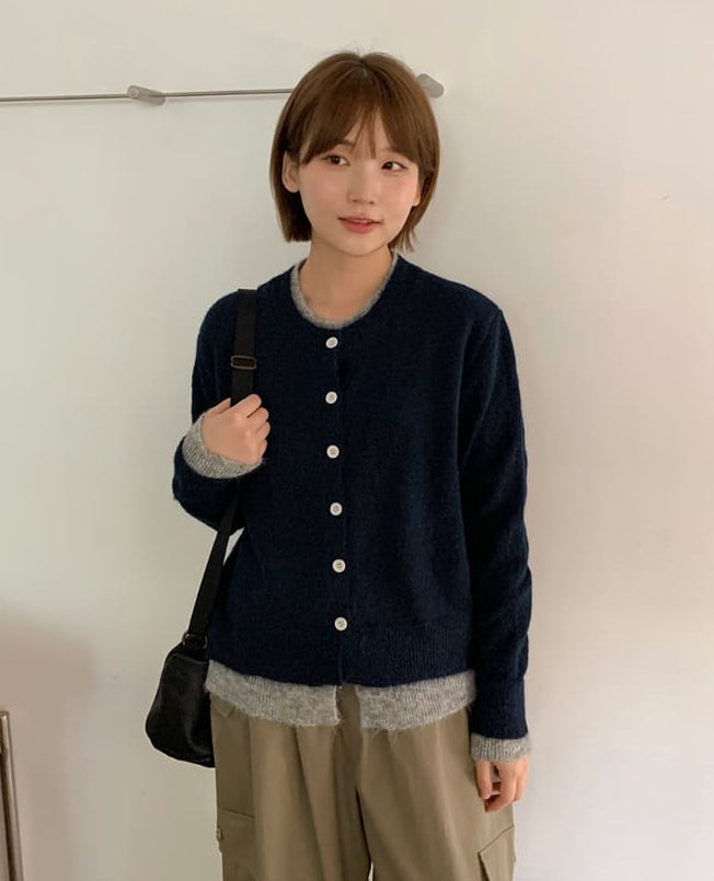 タイチンスカラーレイヤードウールラウンドニットカーディガン