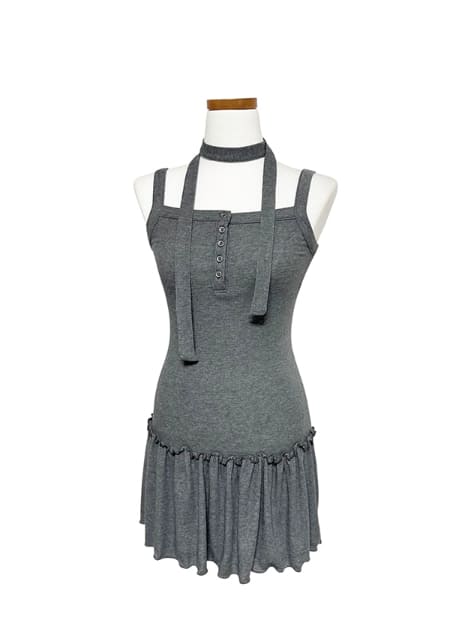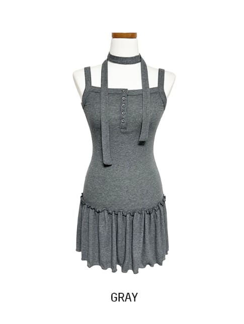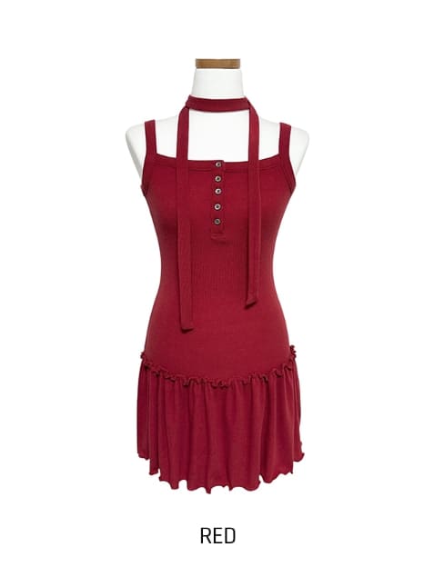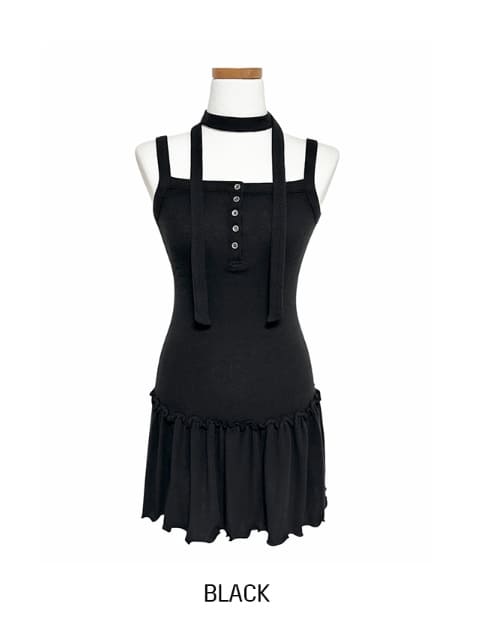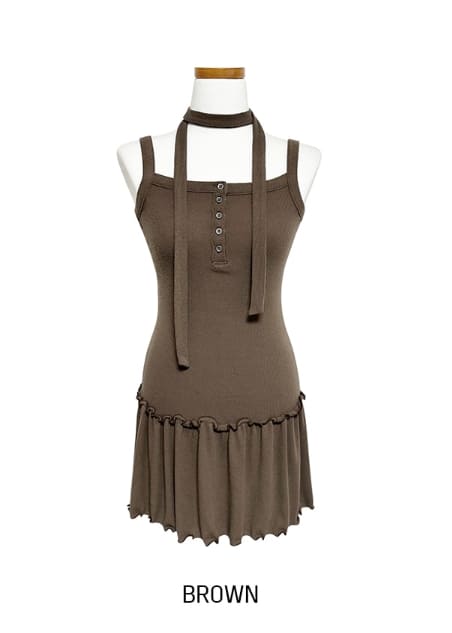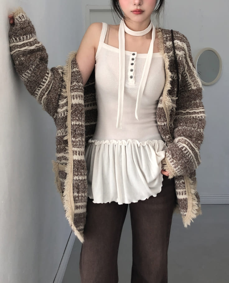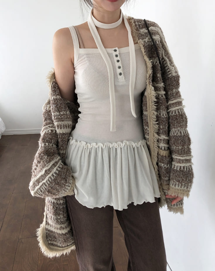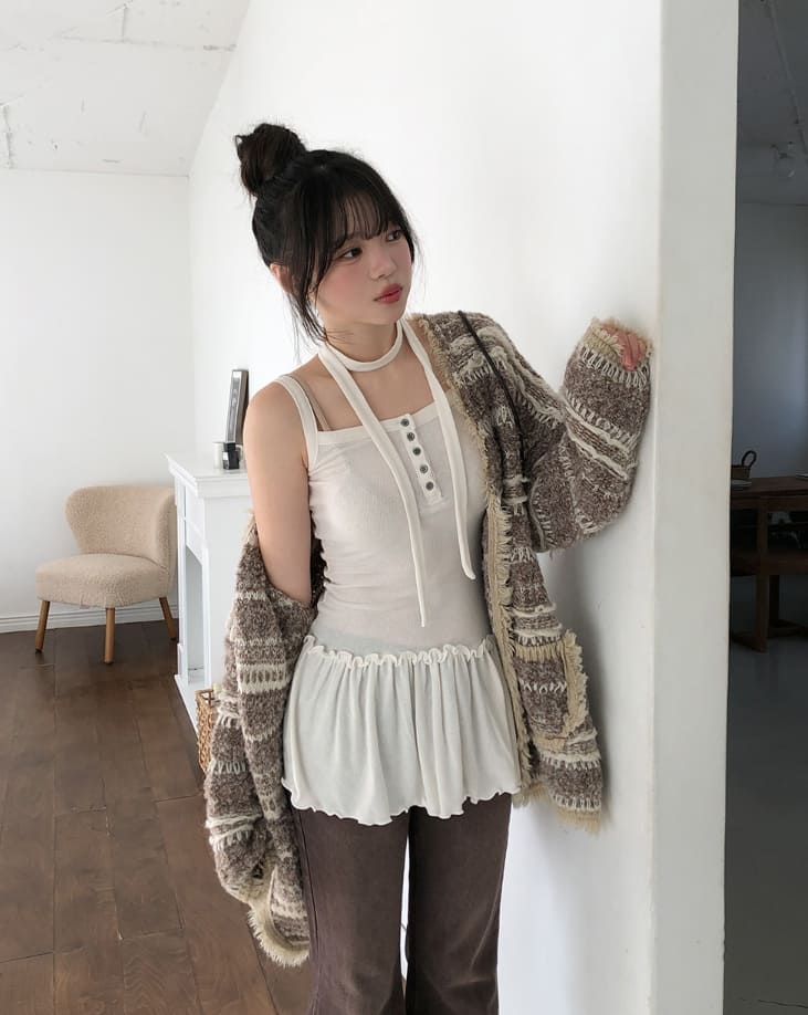 [scarf set] T-shirt button ruffle layered sleeveless