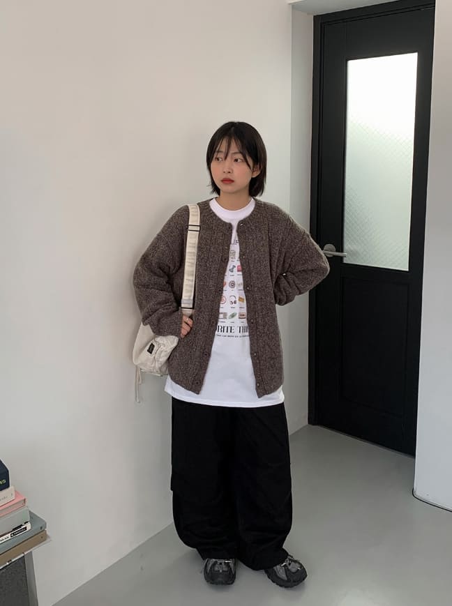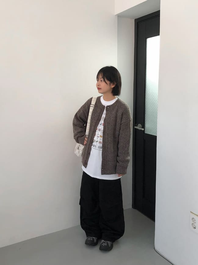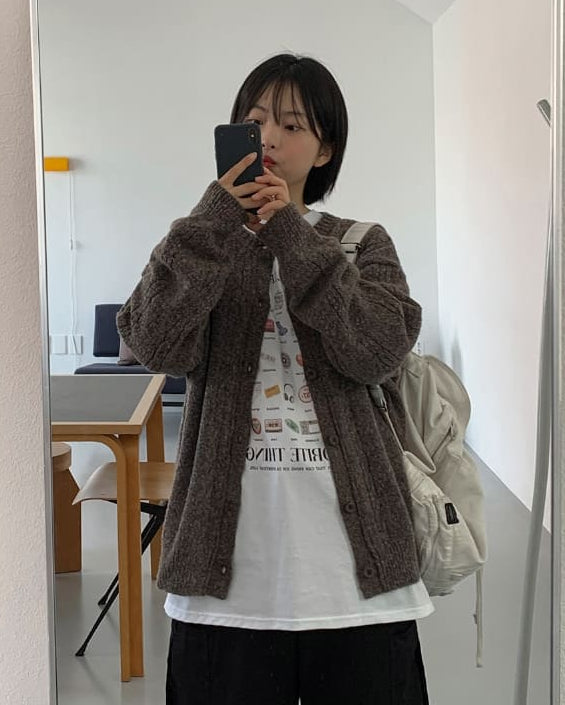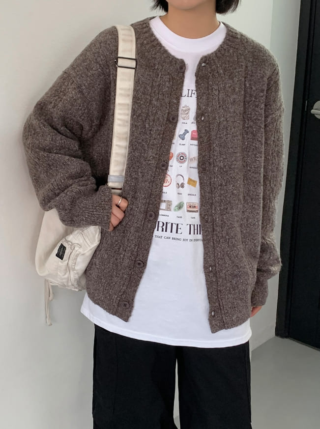 [男女兼用]アコルタボカシオーバーラウンドニットカーディガン