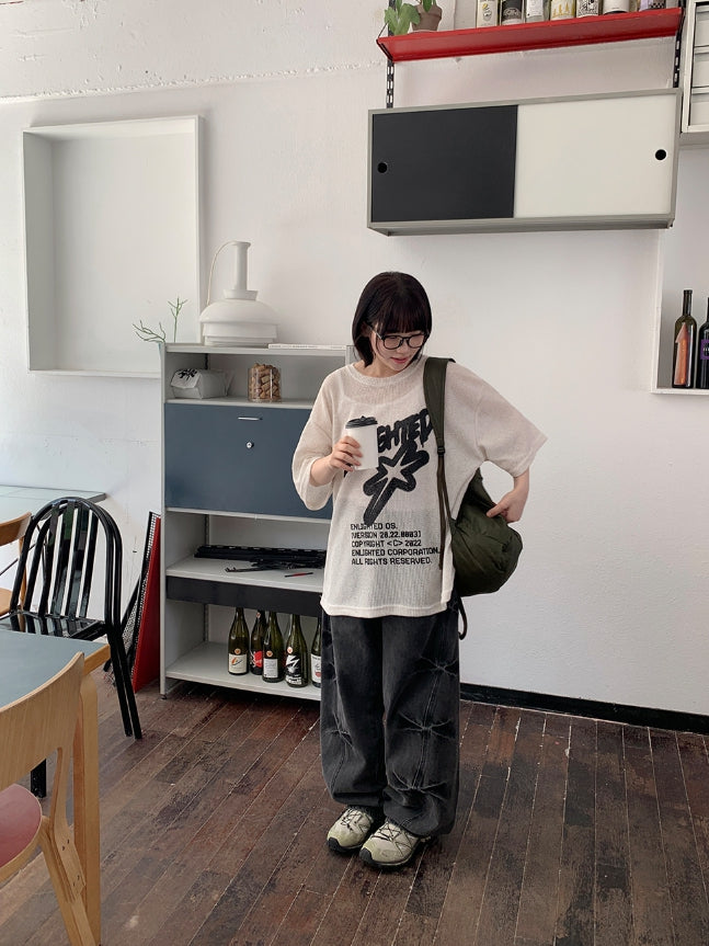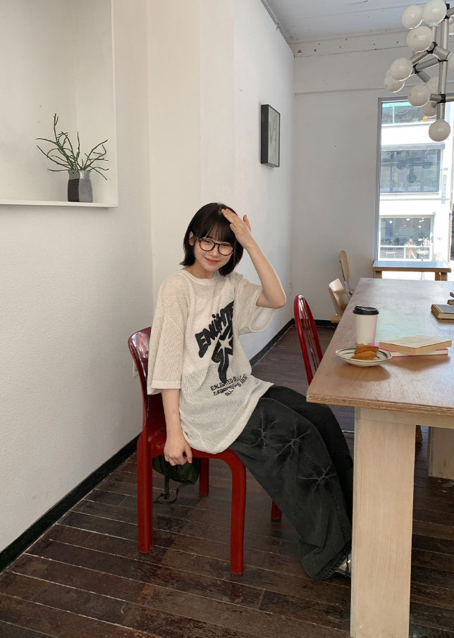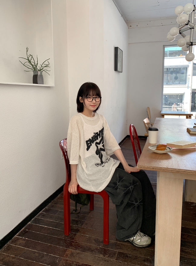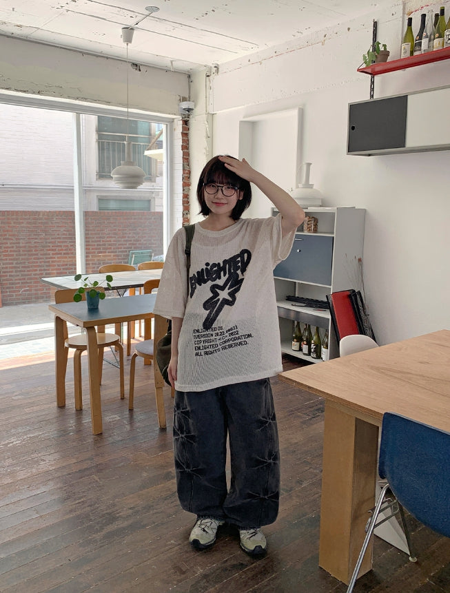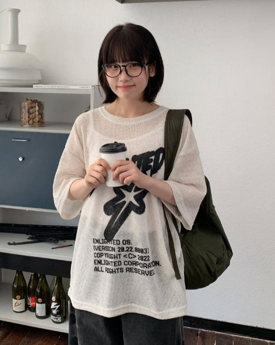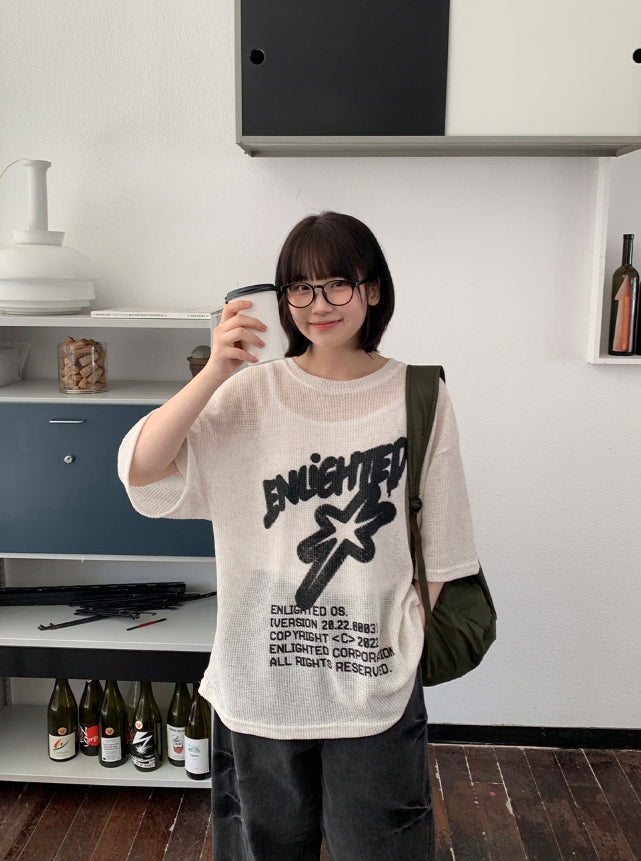 [unisex] Arita Summer Printing Net Short Sleeve Knit