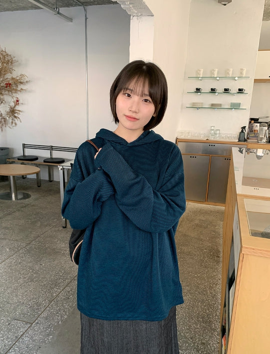 [unisex] Coniten Stripe Over Hood Long Sleeve Tee