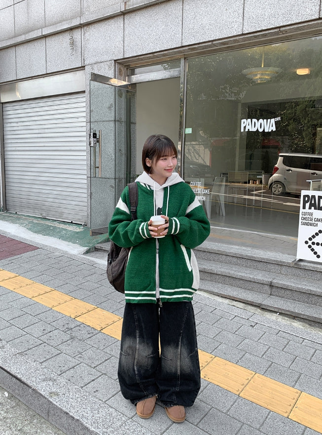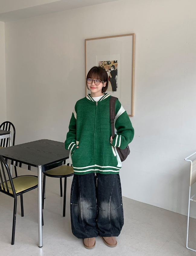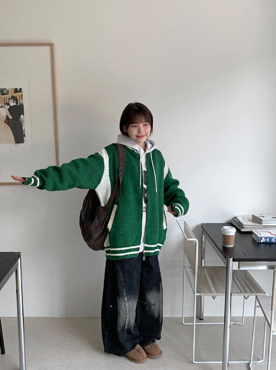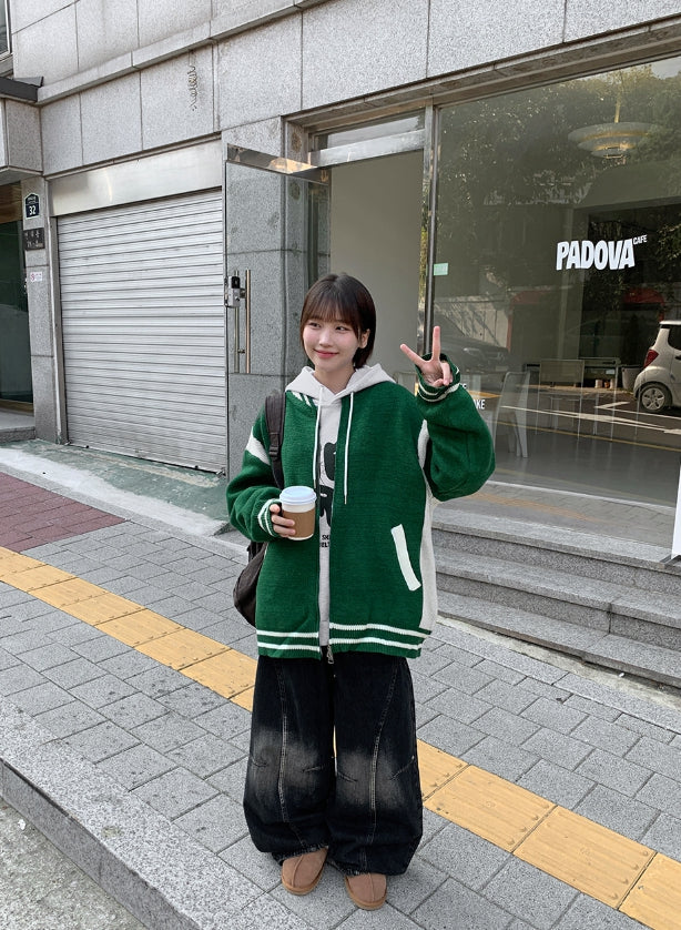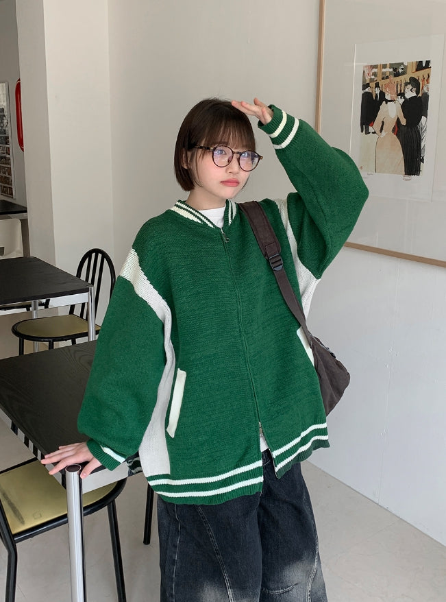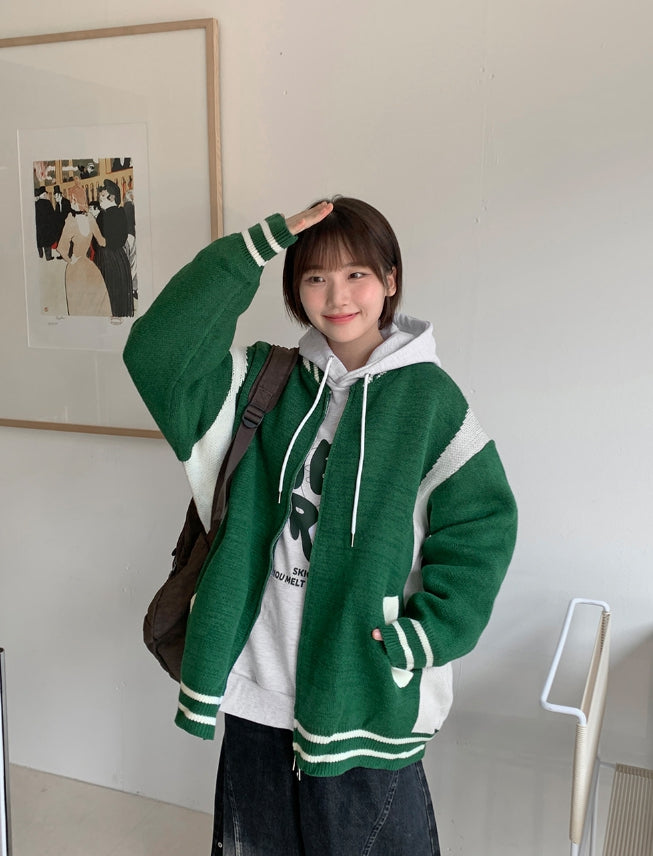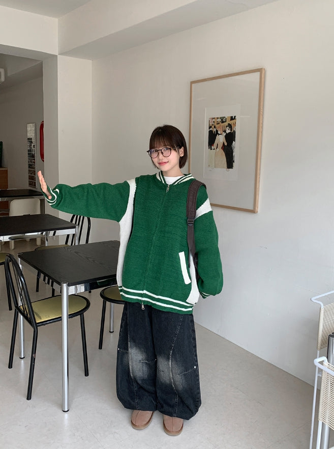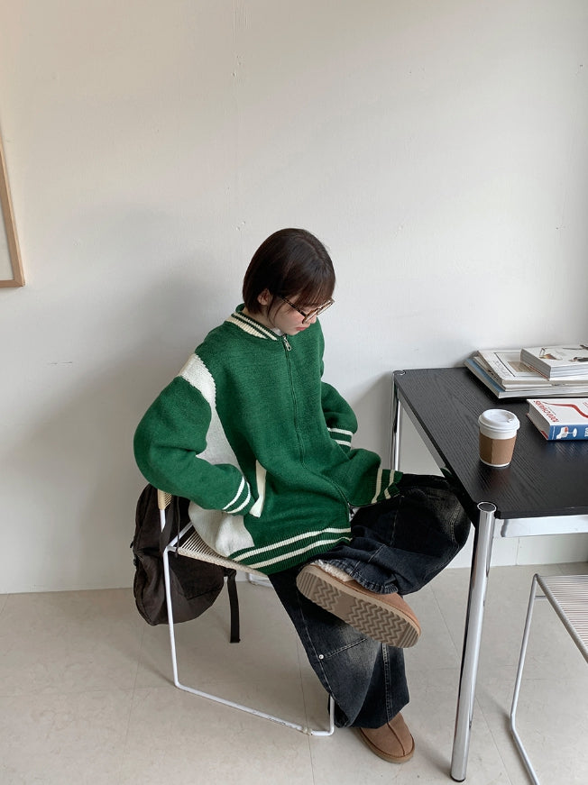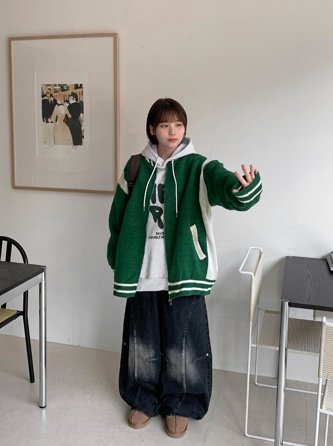 [unisex] Decoy varsity two-way knit over jacket
