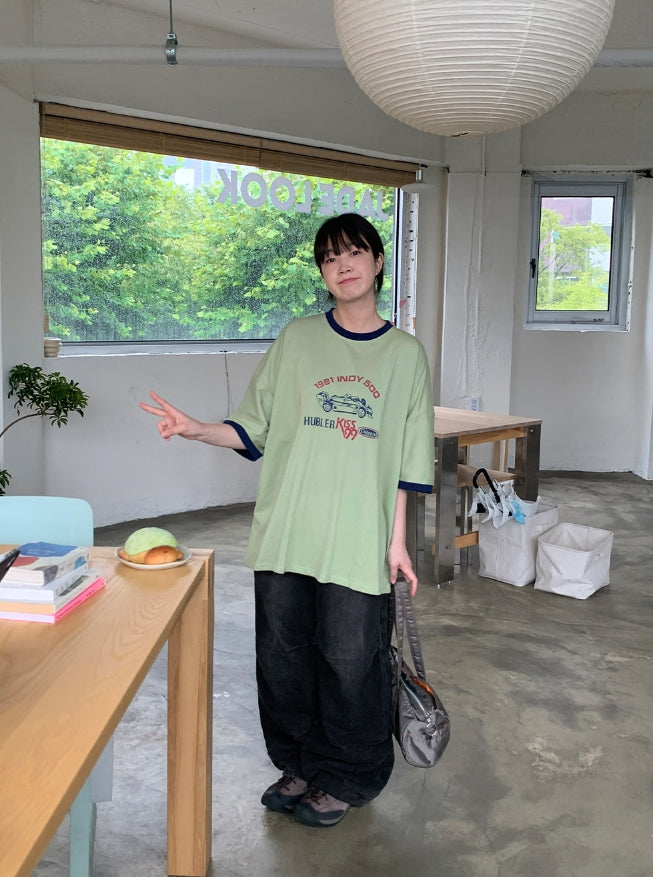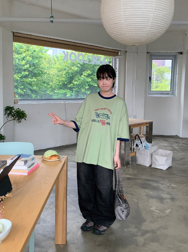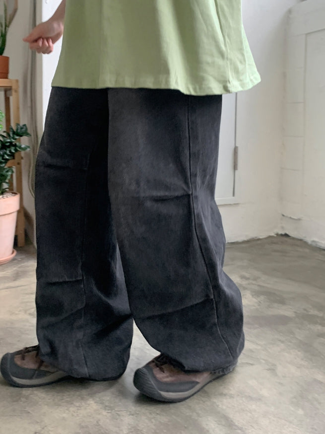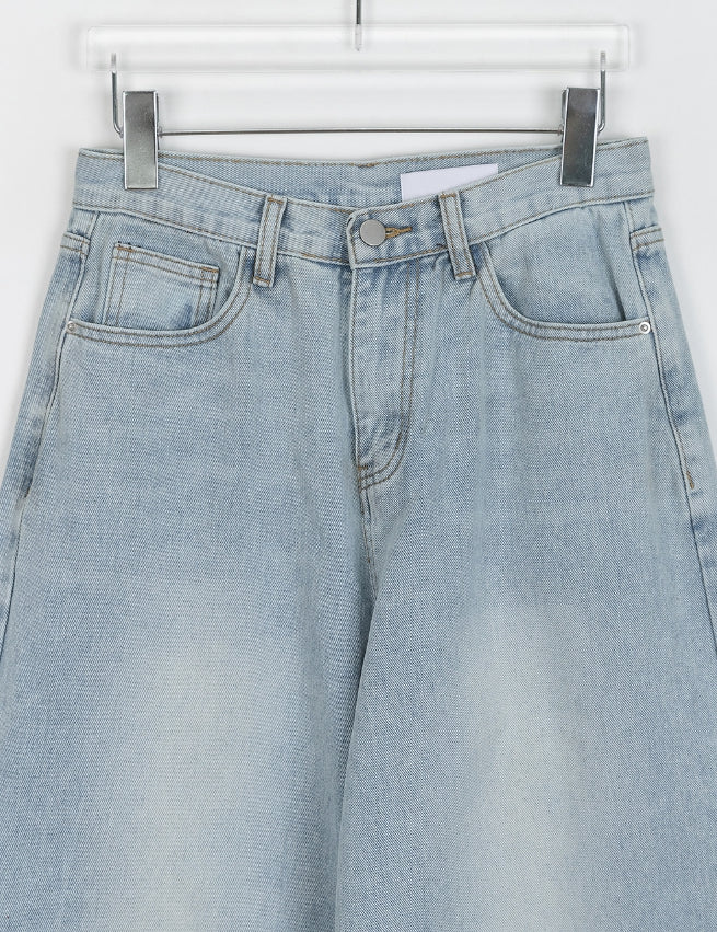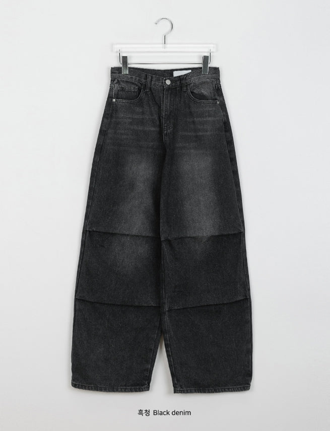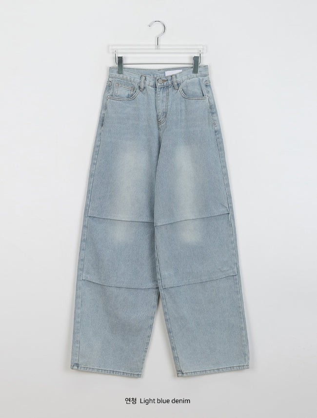 [男女兼用]デフウォッシュ加工ワイドパラシュートデニムパンツ