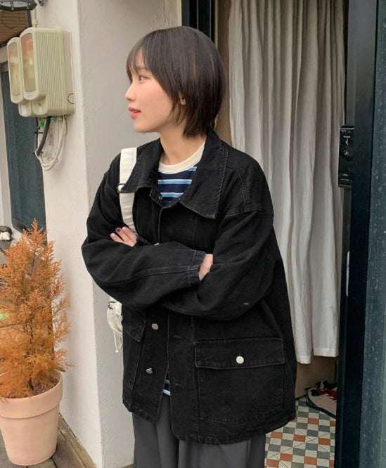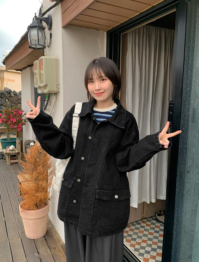 [unisex] Delkin Denim Pocket Half Jacket