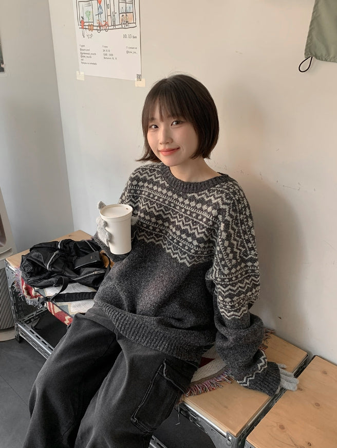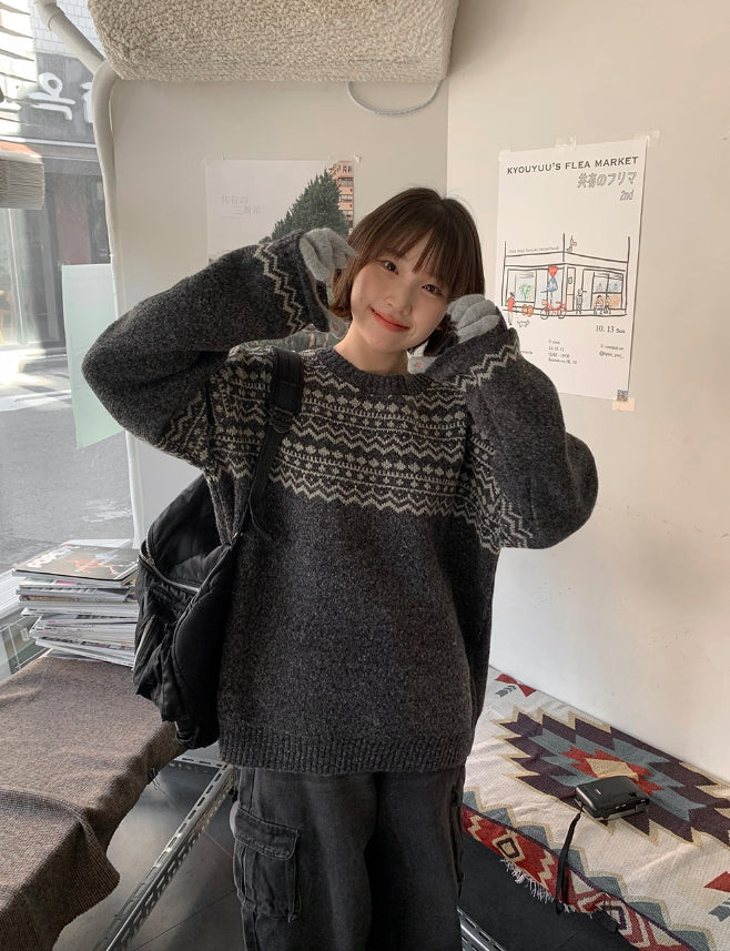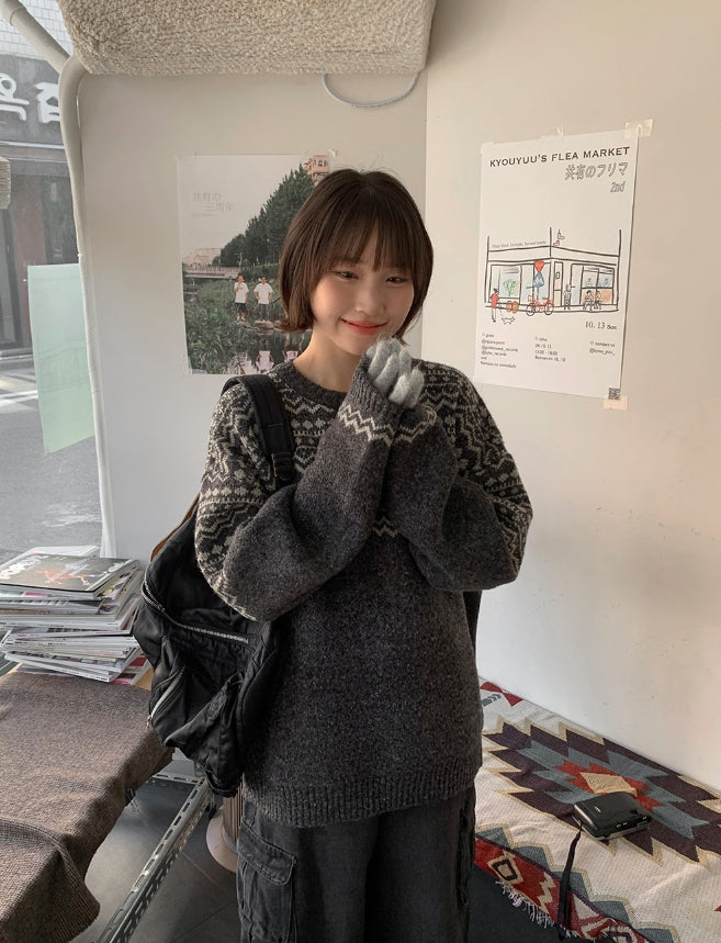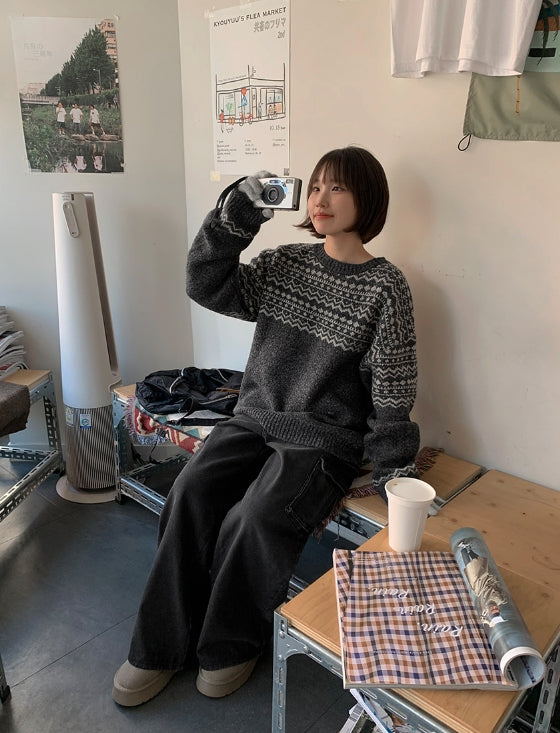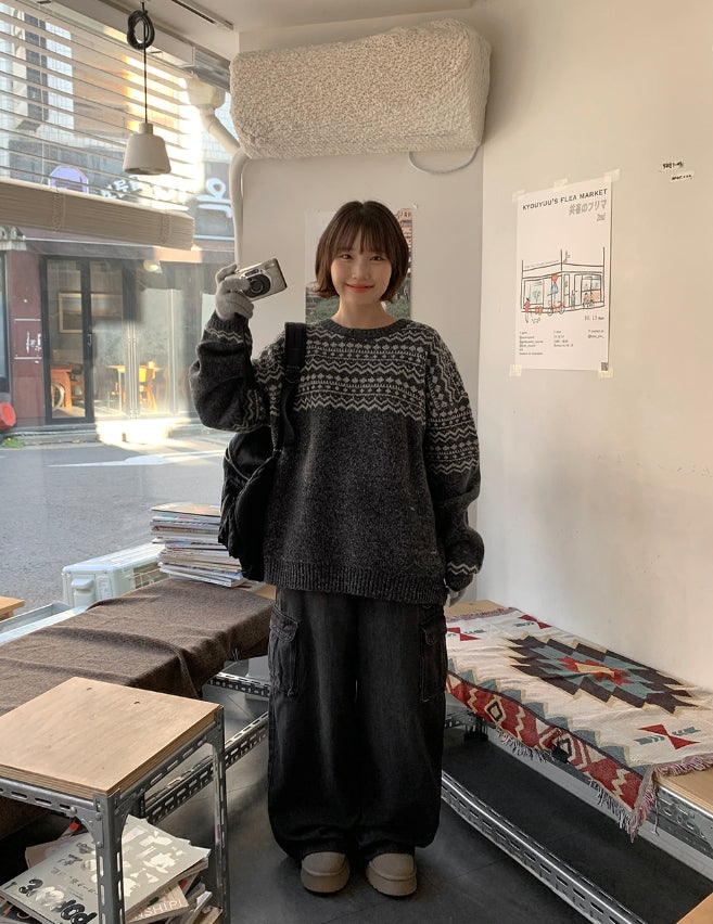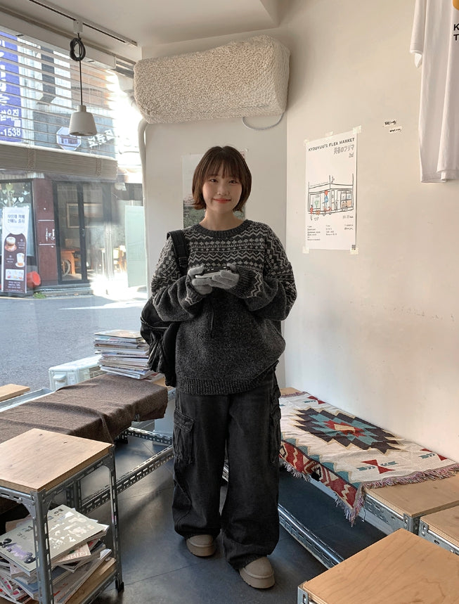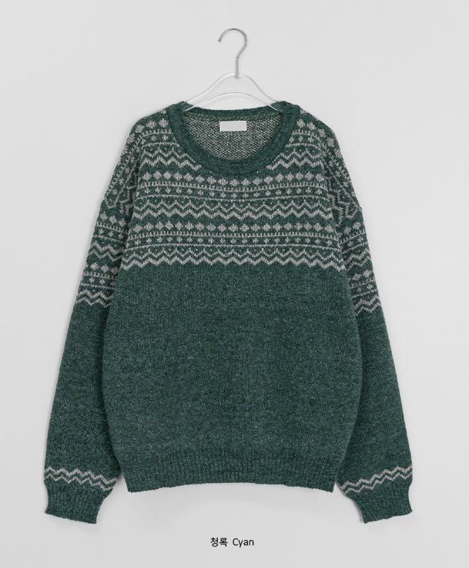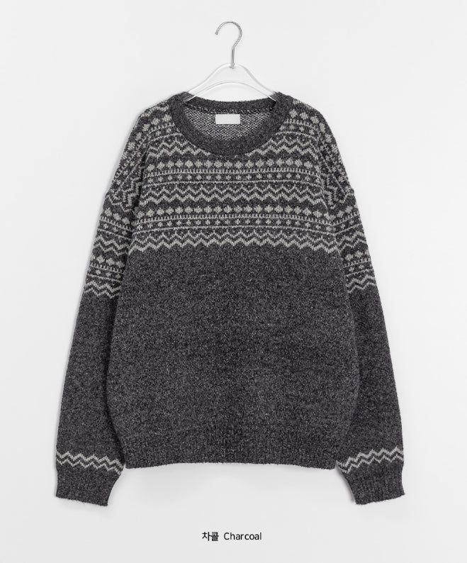 [unisex] Denio Cowichan Nordic Over Round Wool Knit