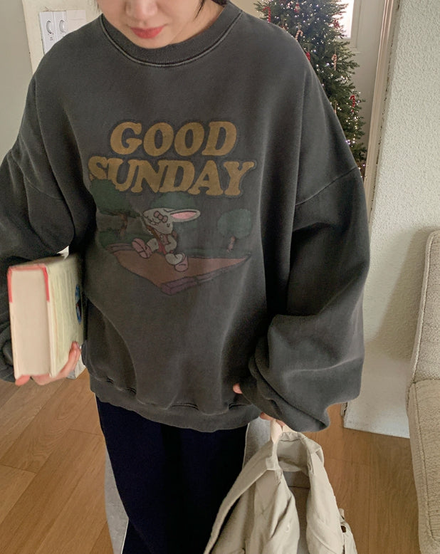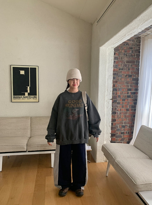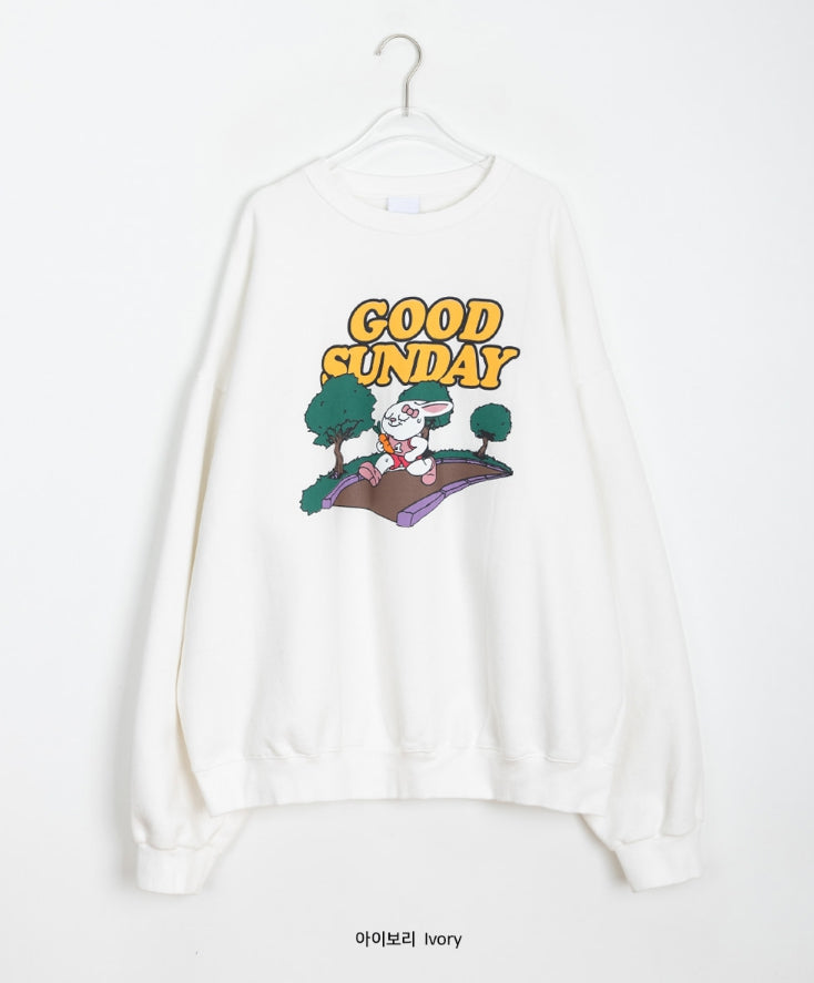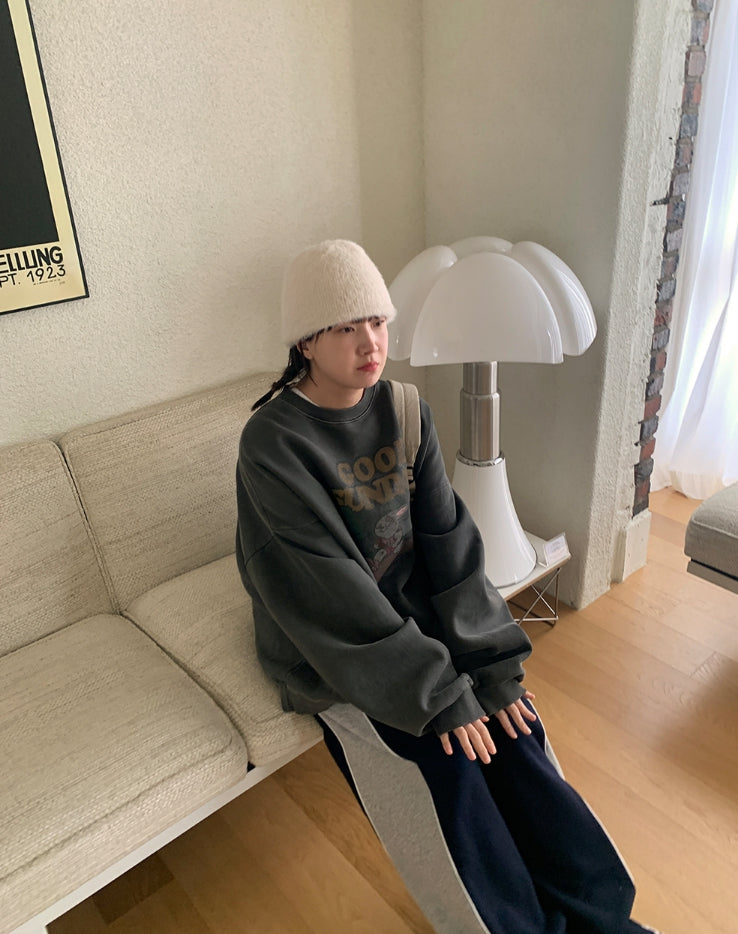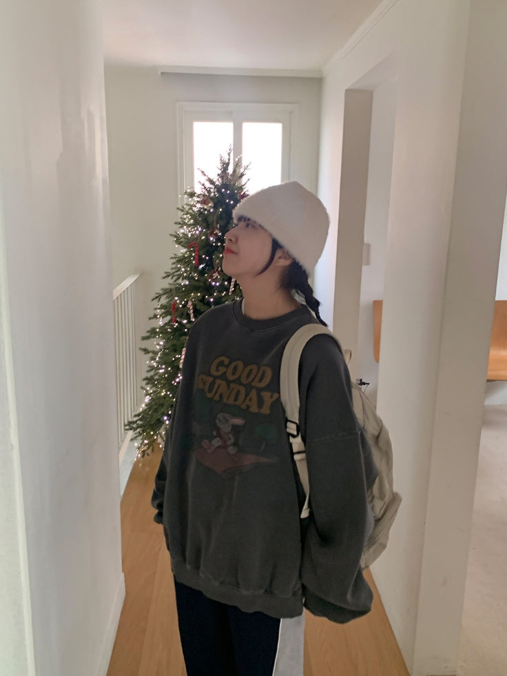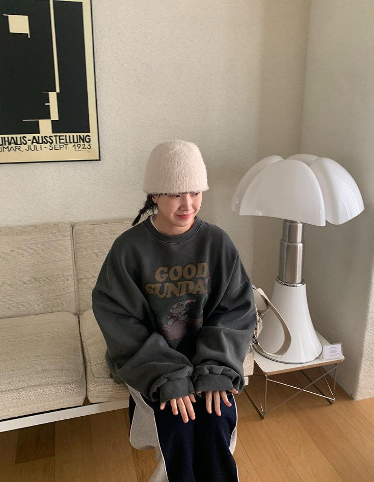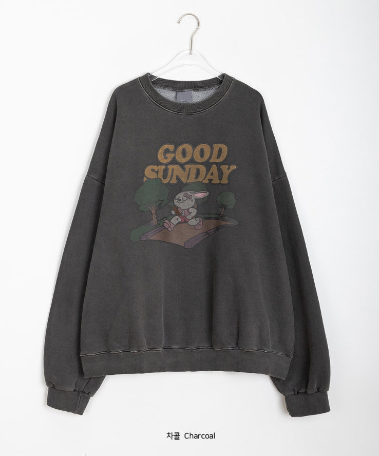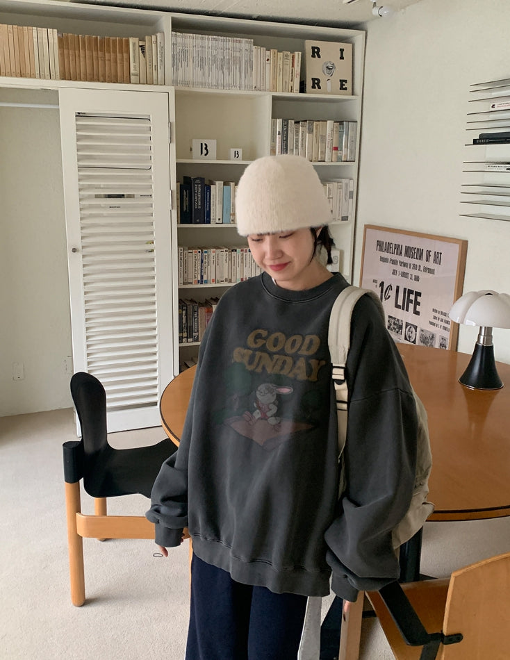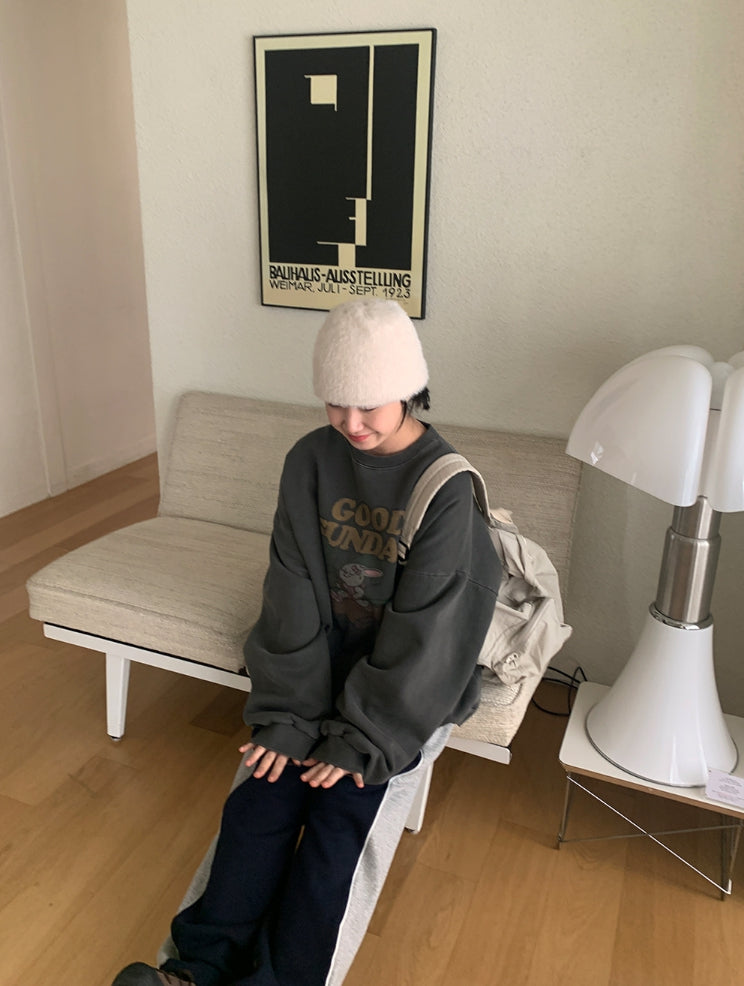 [unisex] Dichen Pigment Rabbit Printing Brushed Sweatshirt